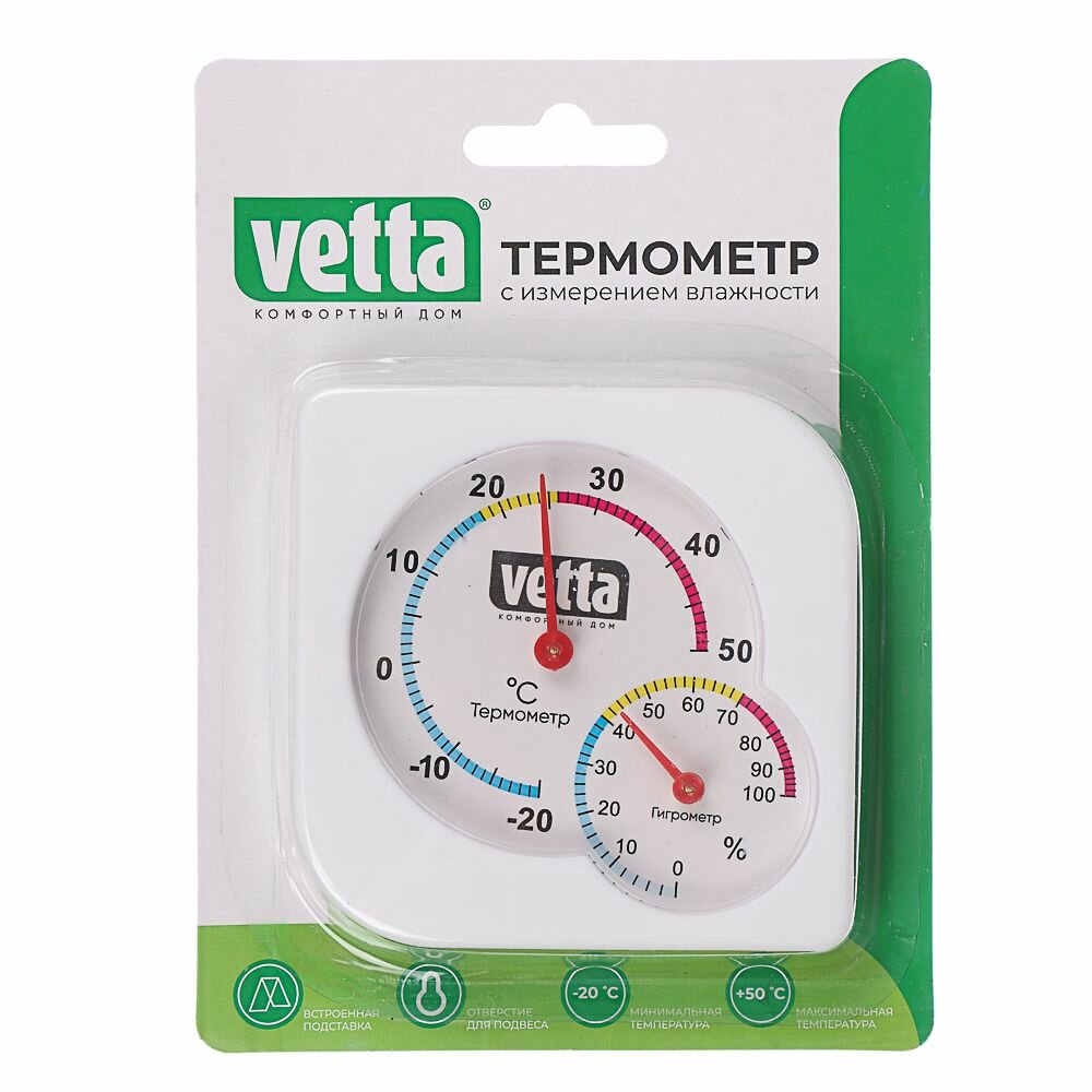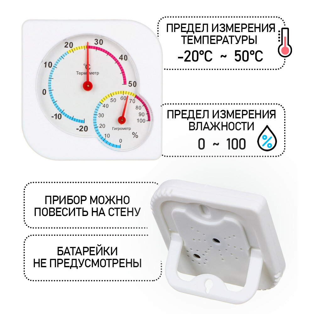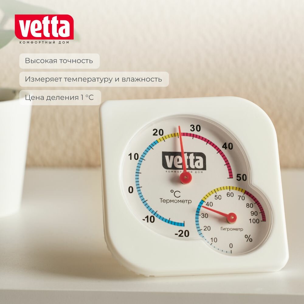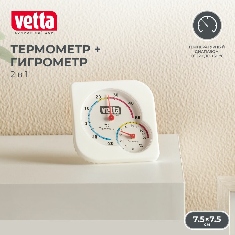 Термометр мини, измерение влажности, 7,5х7,5 см, Vetta