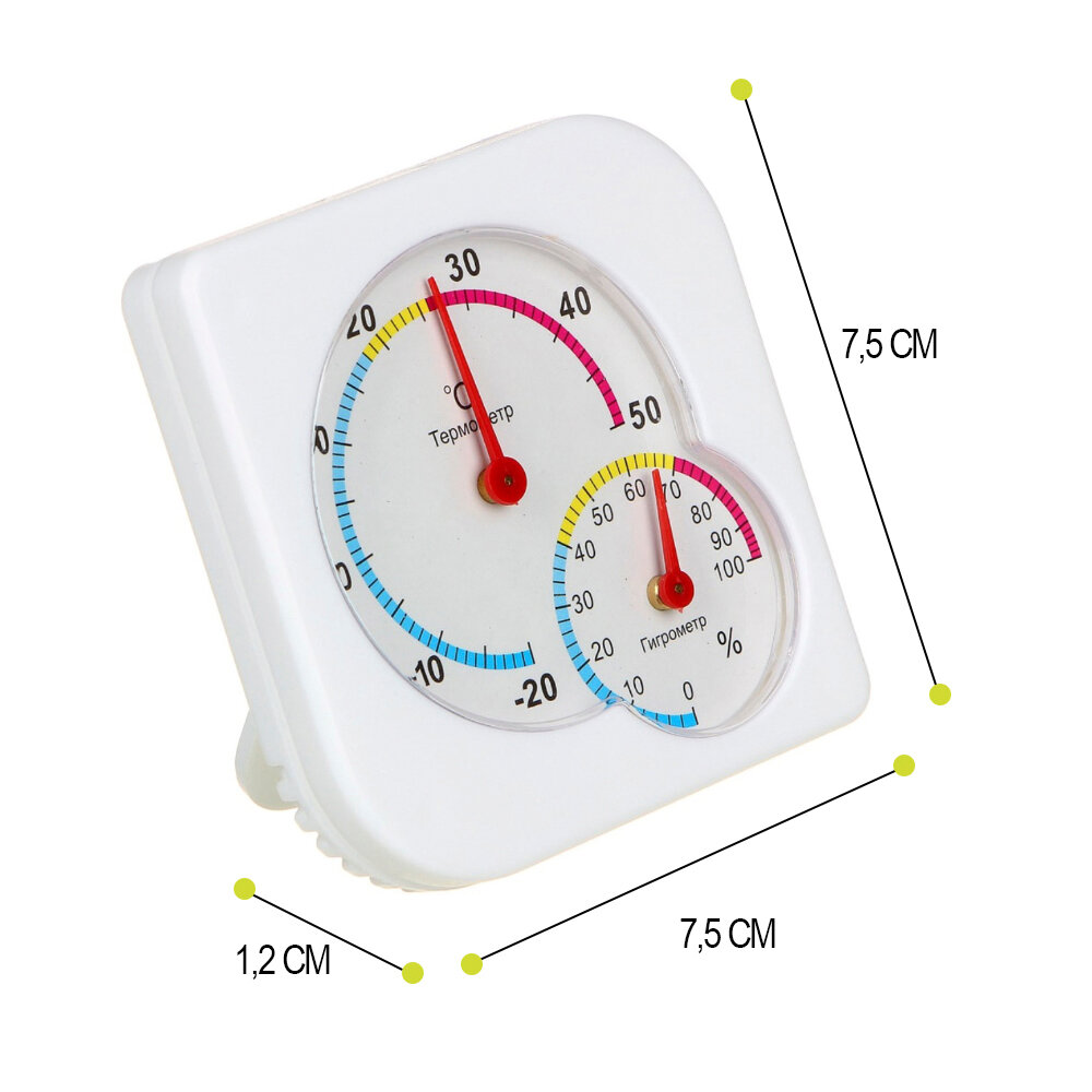 Термометр механический с измерением влажности, квадратный 7,5 на 7,5 см