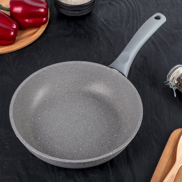 Купить Сковорода, d=24 см, с ручкой, светлый мрамор
