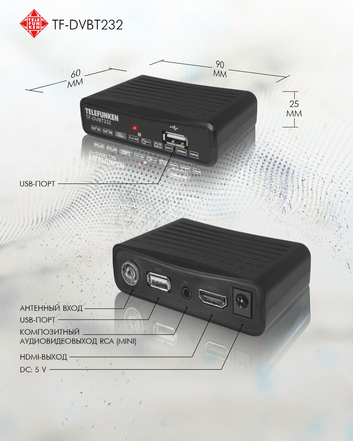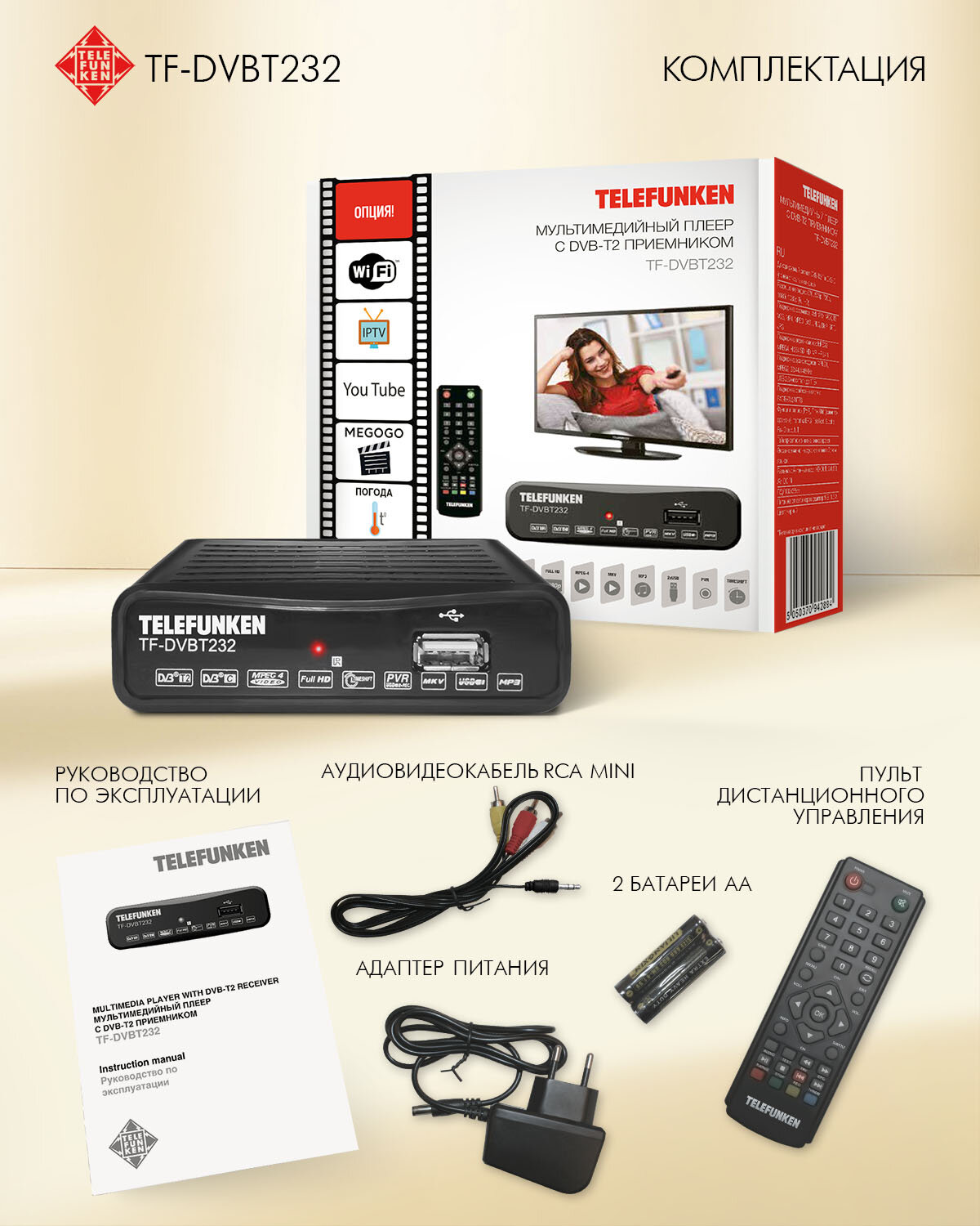 ТВ-приставка Плееры Медиа TELEFUNKEN TF-DVBT232(черный) ТВ тюнер