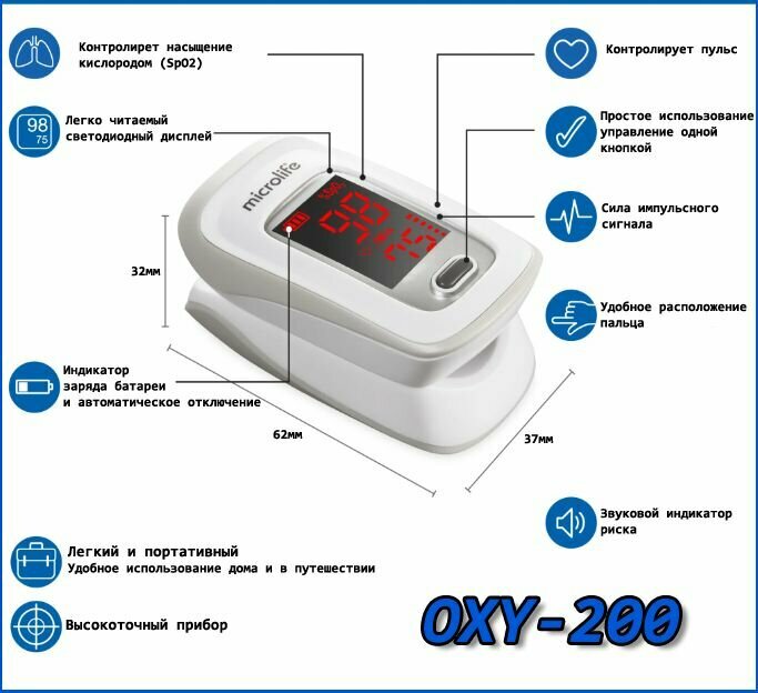 Пульсоксиметр Microlife OXY 200 со светодиодным дисплеем для измерения гемоглобина интересное: