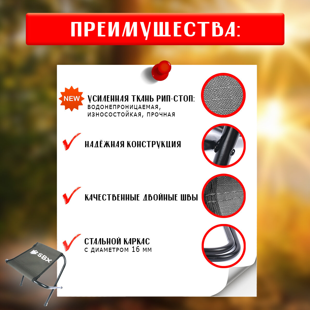 Табурет складной туристический SBX ST-06, выдерживает нагрузку до 90 кг., цвет Хаки интересное: