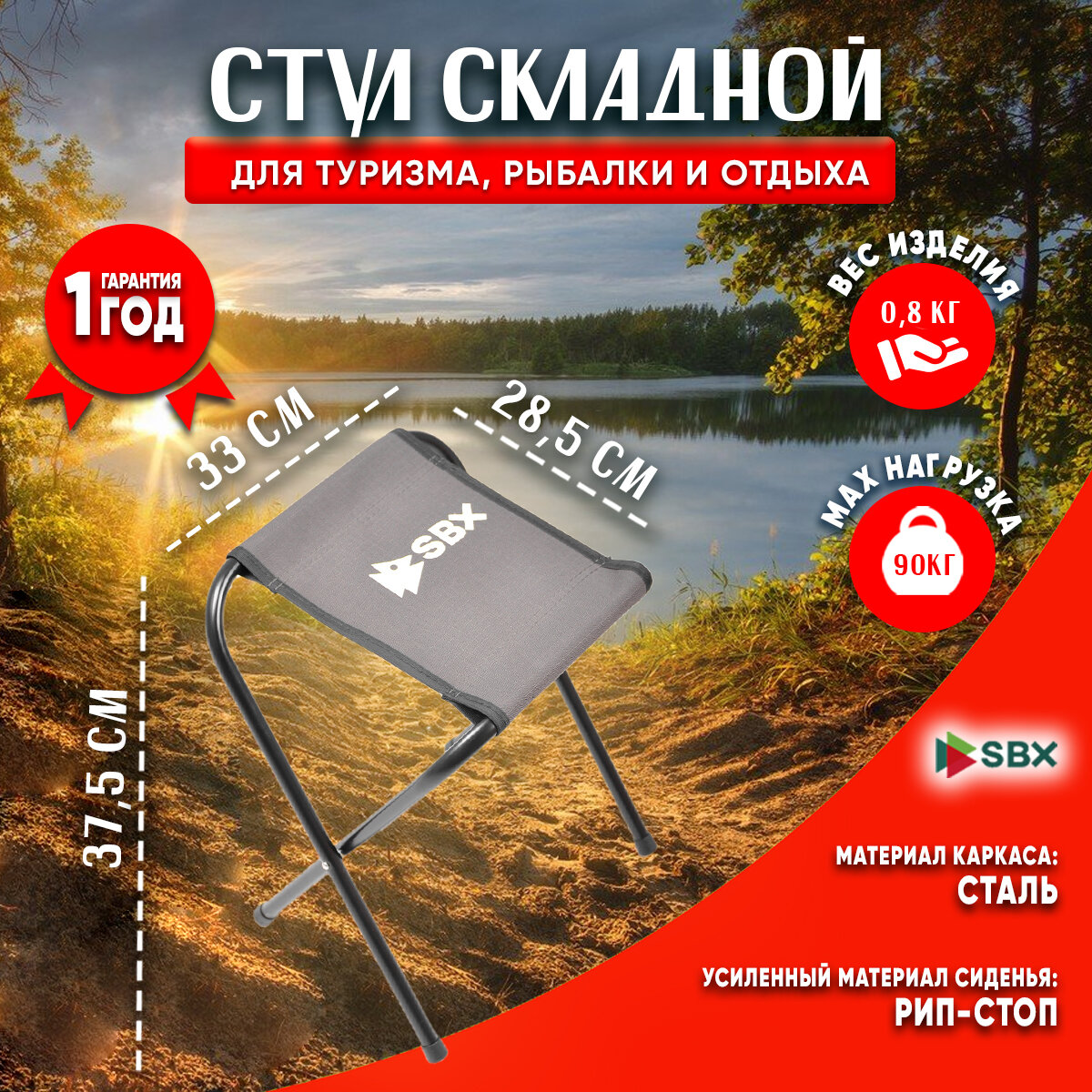 Стул складной туристический походный для сада / Легкий и компактный раскладной рыболовный табурет из стали / Кресло для рыбалки до 90 кг SBX ST-06