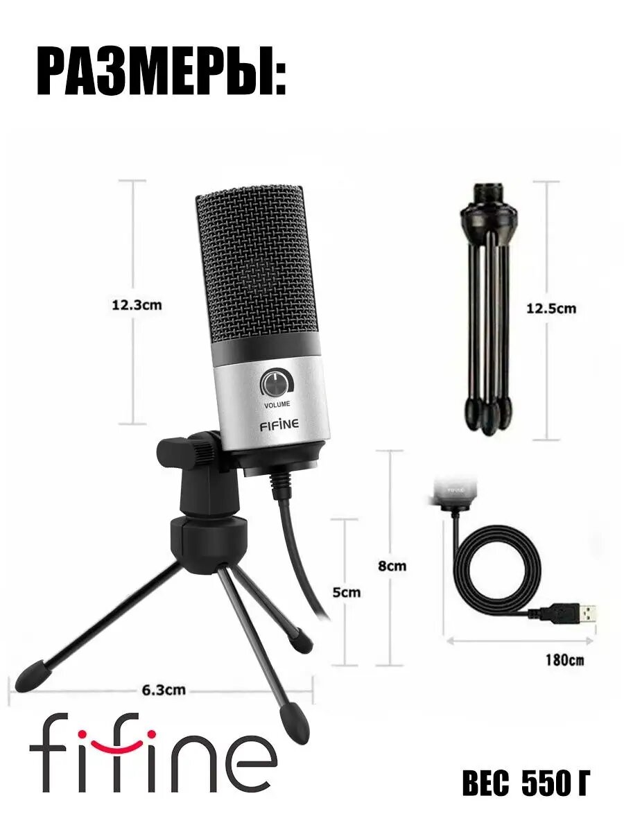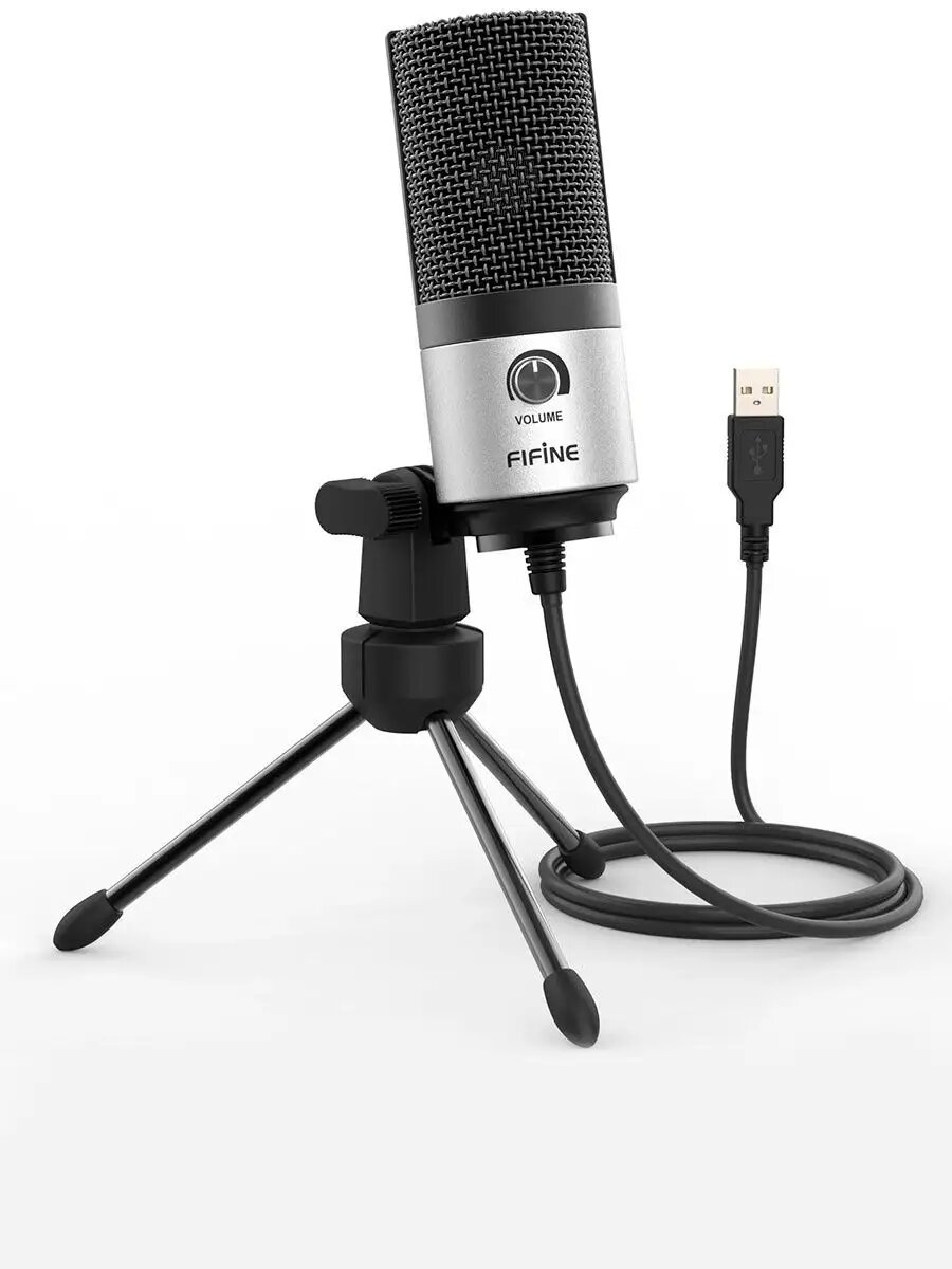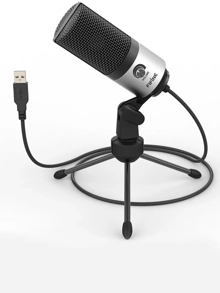 Конденсаторный студийный USB-микрофон Fifine K669 (компьютерный, игровой, для стримов, для конференций, Silver)