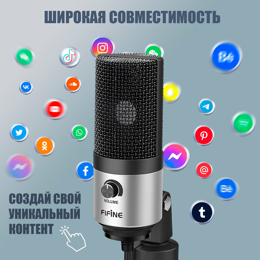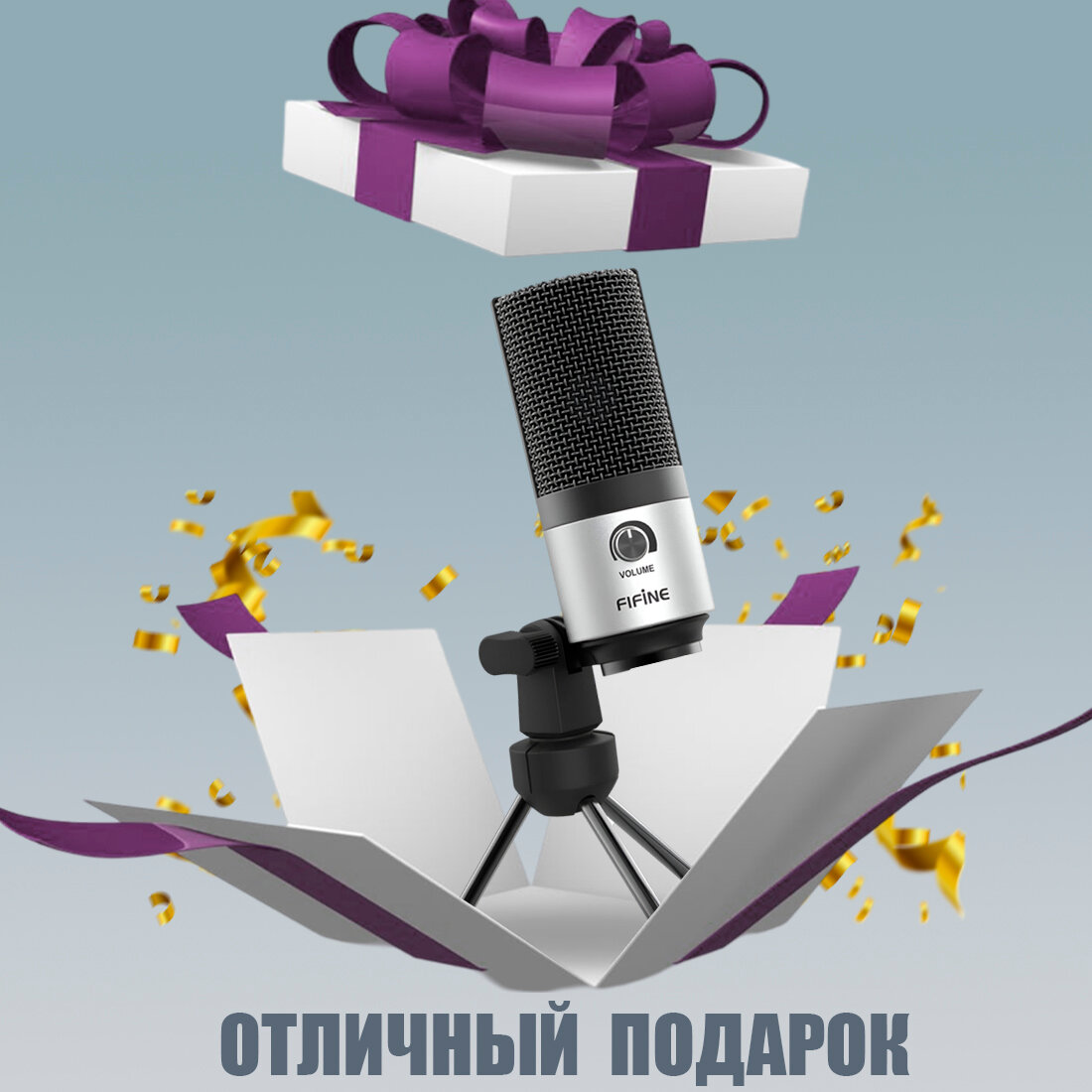 Микрофон Fifine K669, серебристый