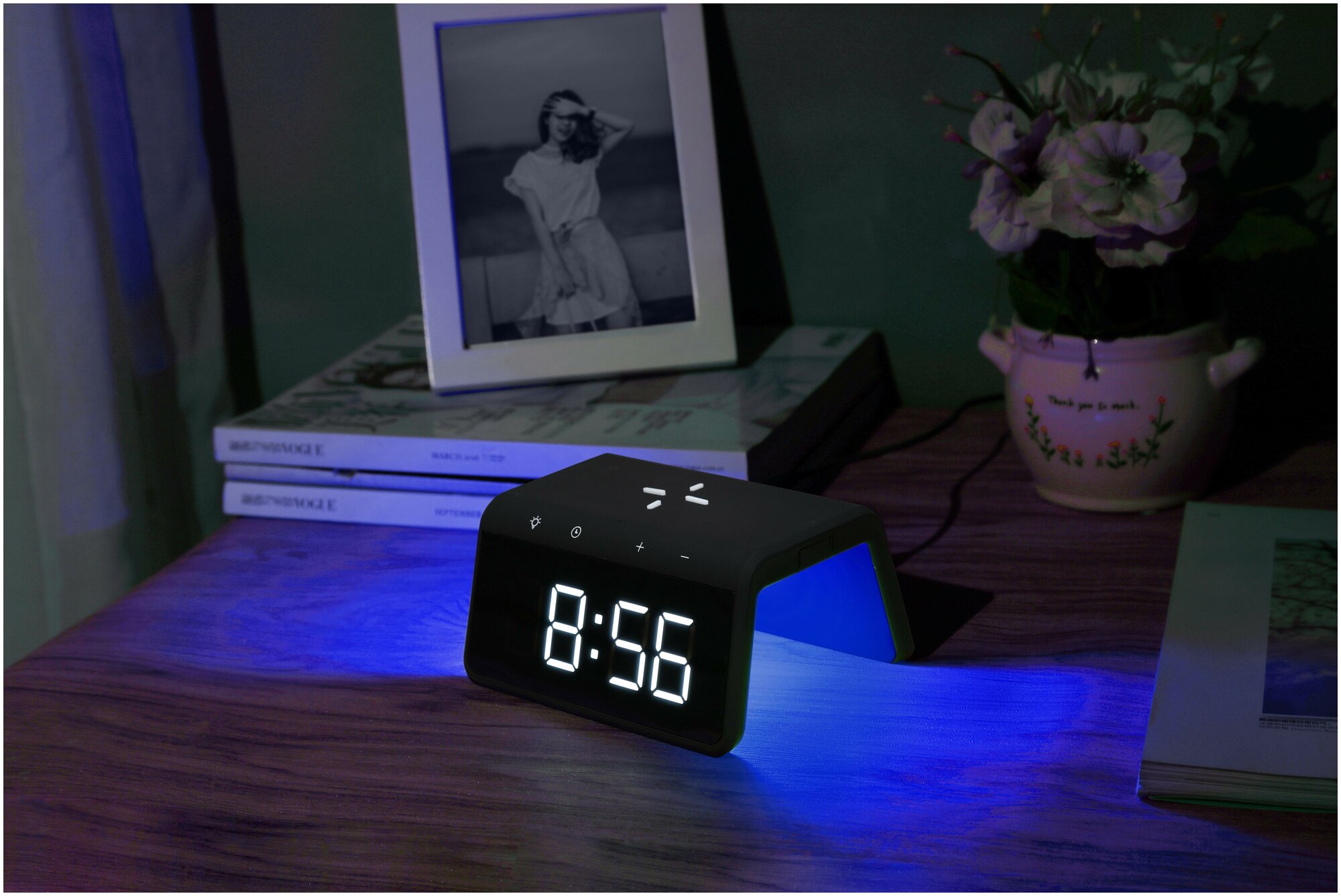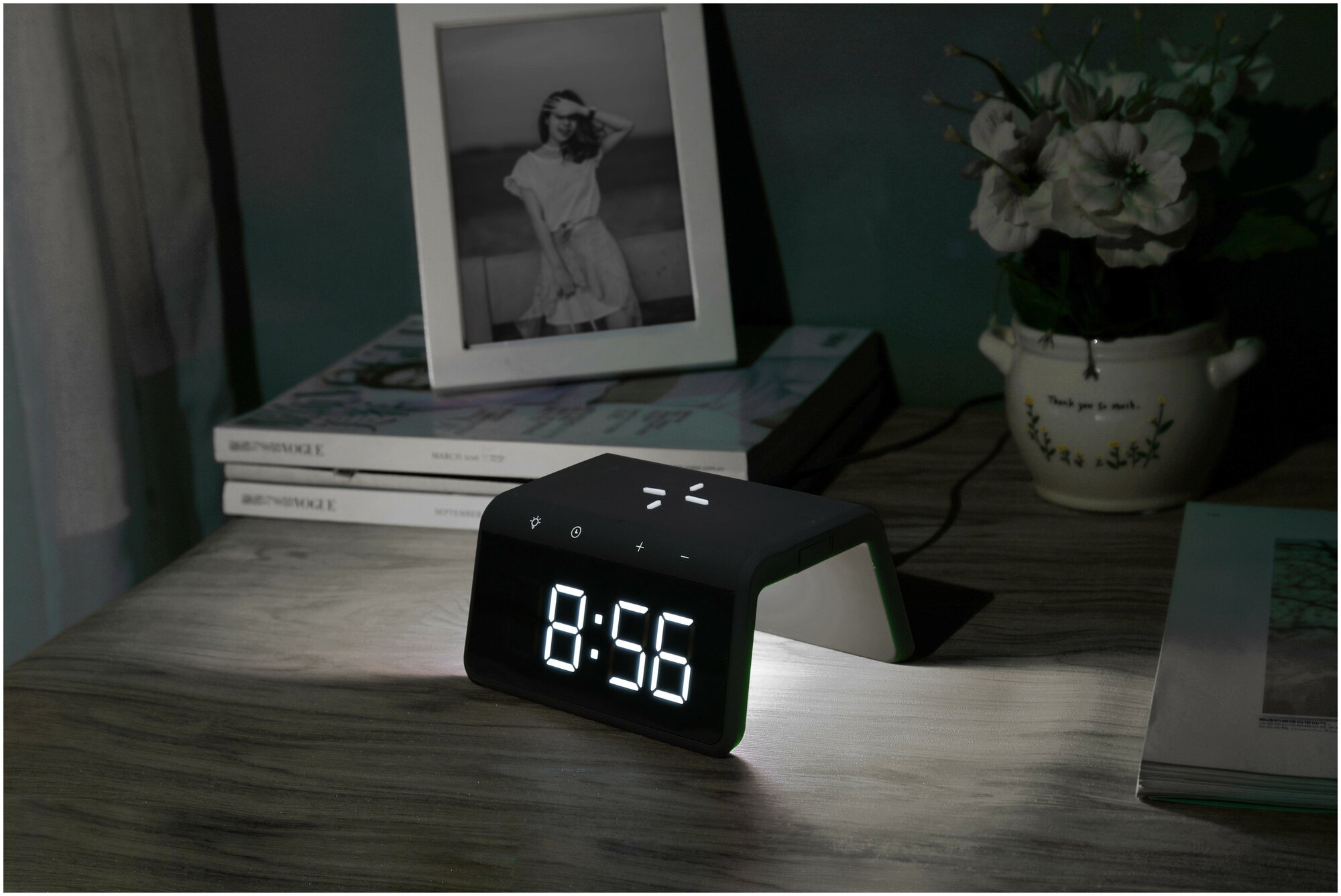 и быстро заряжает телефон. Крупный циферблат часов, есть возможность изменить яркость индикации, так что, мешать не будет. Есть питание от батарейки, на случай отключения от сети. Это удобно, не нужно заново устанавливать время. Ночником и будильником - не пользуюсь, Соотношение цена-качество, очень хорошо. |