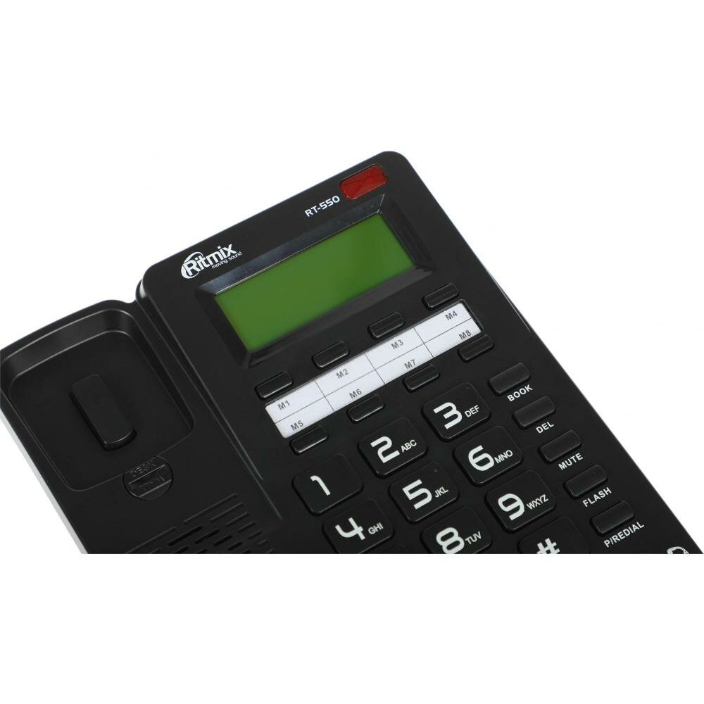 Проводные телефоны RITMIX Проводной телефон Ritmix RT-550, дисплей, телефонная книга, однокнопочный набор, AUX, черный