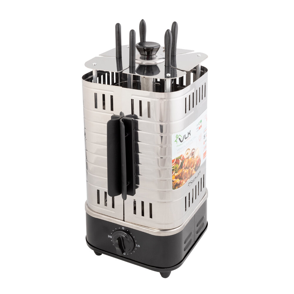 Шашлычница Vlk Palerrmo 6500 Черный/Стальной, 1200 Вт, 5 Шампуров, Таймер До 30 Мин