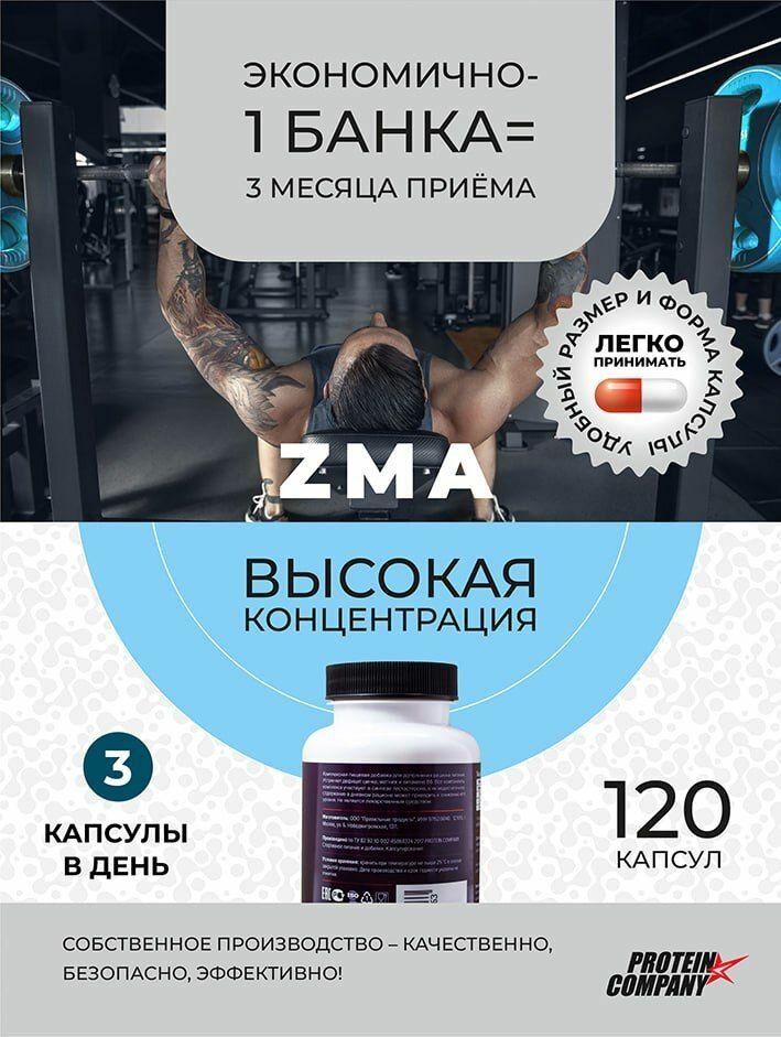ZMA Zinc + Mg + B6 / PROTEIN.COMPANY / ZMA Комплекс / Капсулы / 40 порций / 120 капсул
