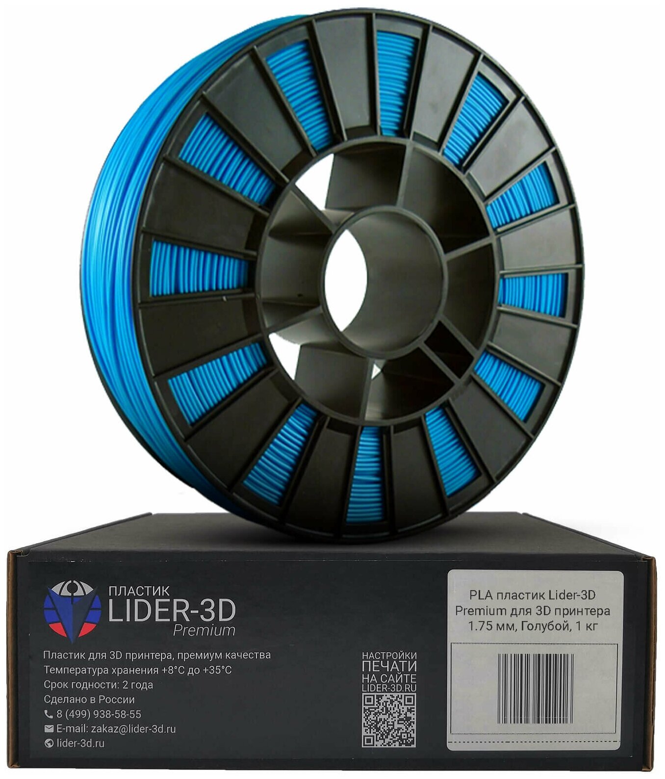 Купить PLA пластик LIDER-3D Premium для 3D принтера 1.75 мм, Голубой, 1 кг