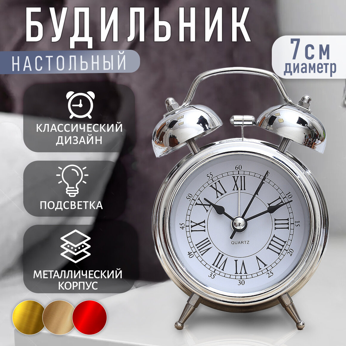 Купить Часы будильник настольные D-7 см цвет хром Эврика / подарок мужчине, женщине, ребенку, мальчику, сыну, девочке, дочке