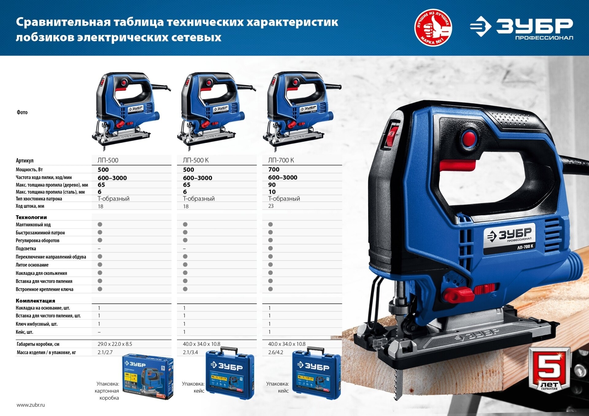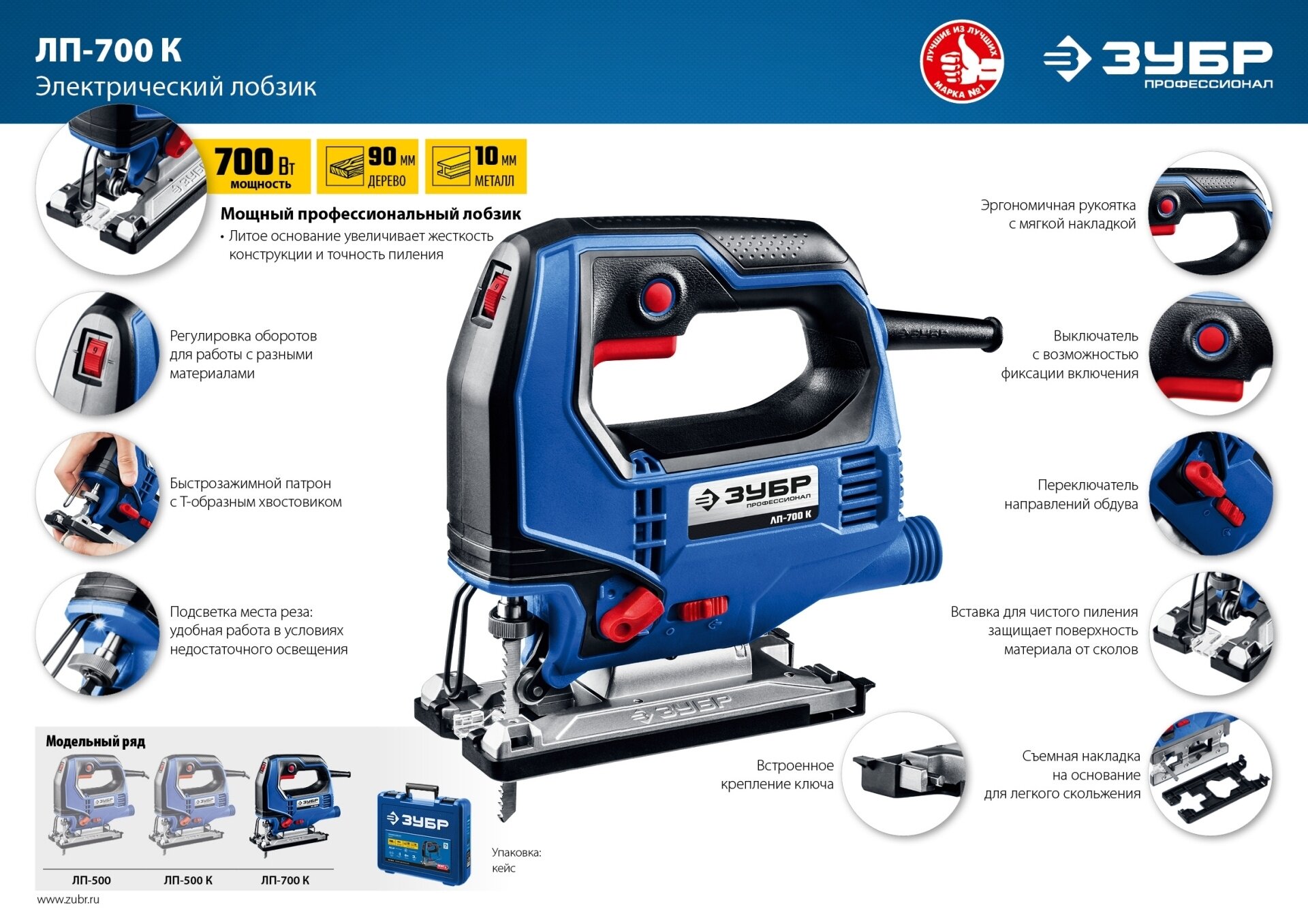 ABC Электролобзик Зубр ЛП-700 К (220В, 700Вт, 600/3000ход./мин., Т-образный) + кейс