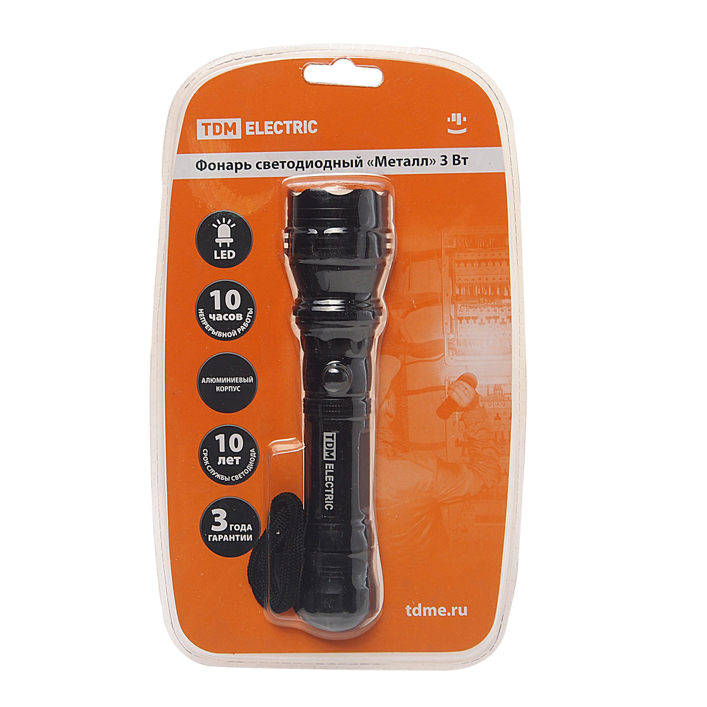 TDM SQ0350-0011 Фонарь светодиодный Металл, 3 Вт светодиод 120 лм/Вт, бат. 3*AAA