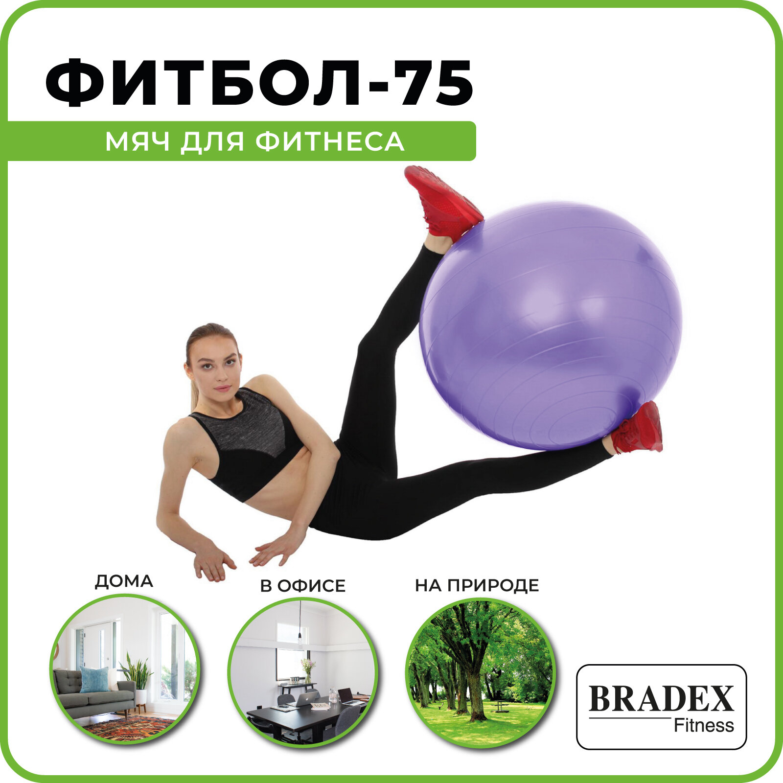 Купить Мяч Bradex SF 0719 75 см с насосом для фитнеса, фиолетовый (ФИТБОЛ-75)