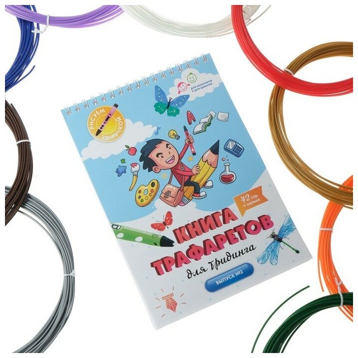 Подарочный набор, 3D ручка + трафарет + пластик PLA 10 цветов по 10 м