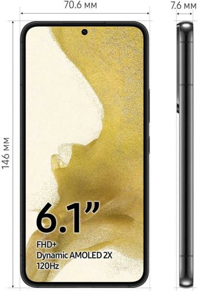 Смартфон Samsung Galaxy S22 8/256Gb SM-S901B RU, черный фантом