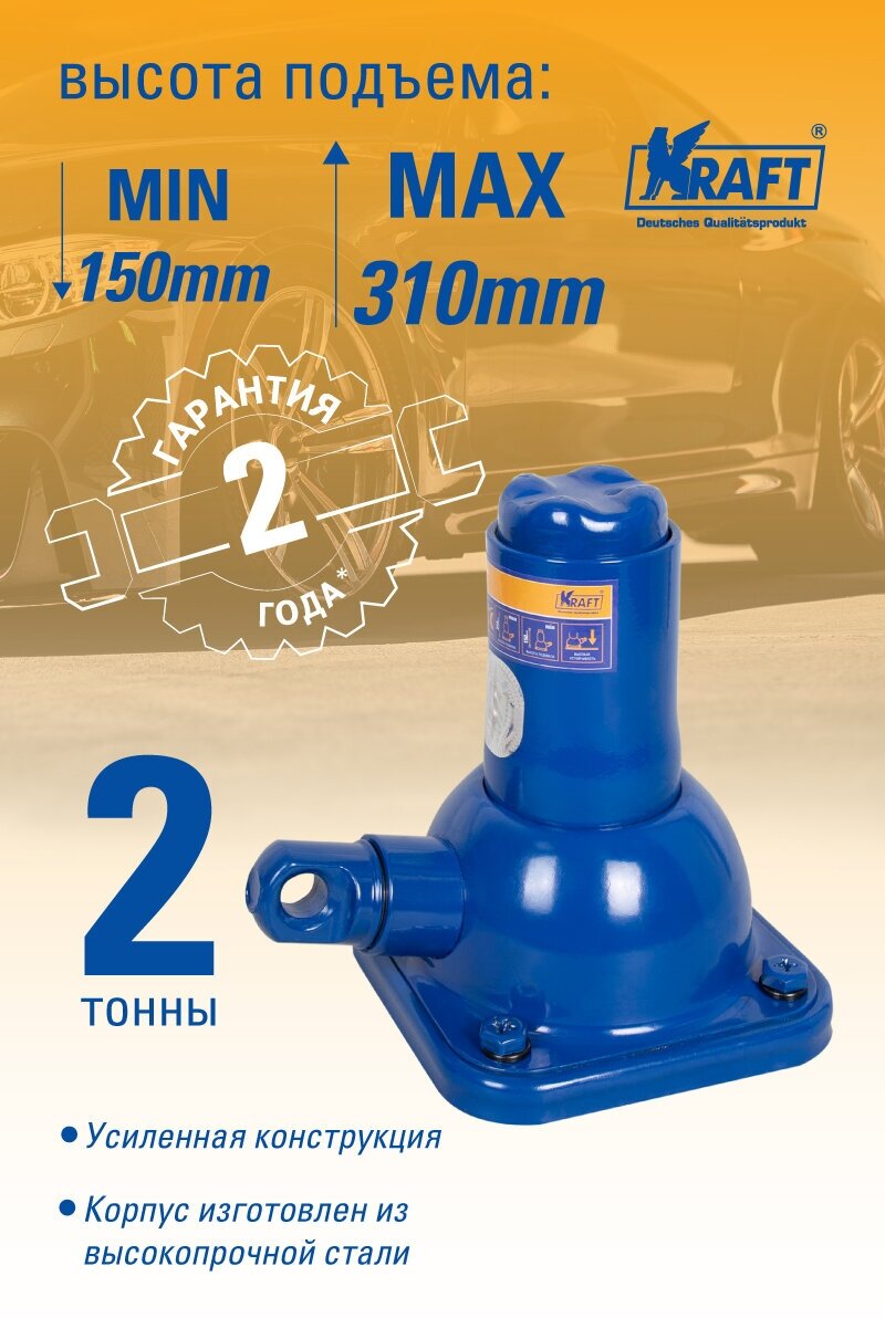 KRAFT KT 800055 Домкрат механический бутылочный 2Т 150-310 мм KRAFT KT 800055 KRAFT KT 800055