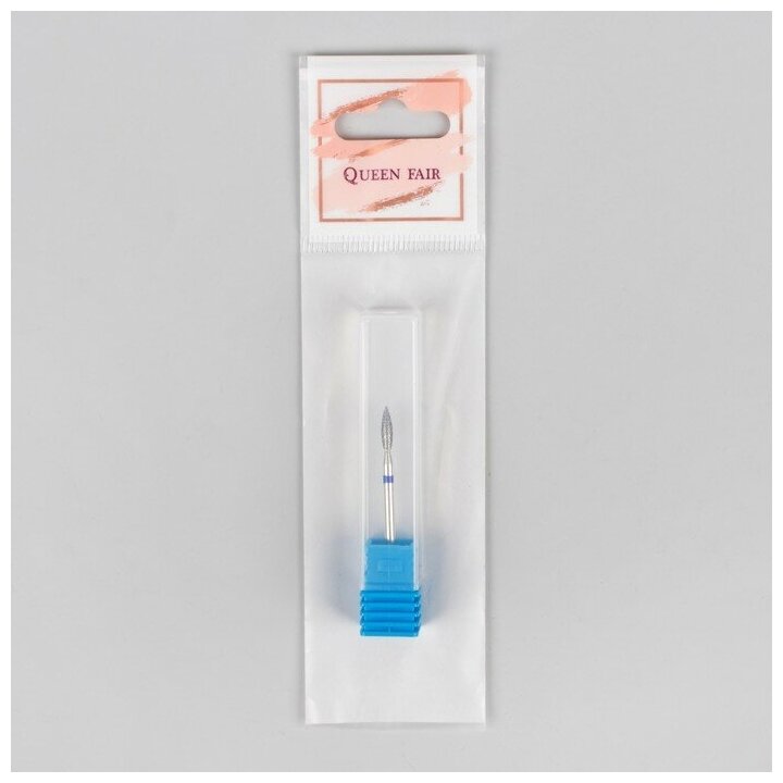 Queen fair Фреза алмазная для маникюра «Пламя», средняя зернистость, 2,5 × 10 мм, в пластиковом футляре