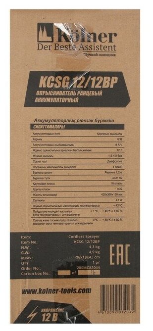 Опрыскиватель аккумуляторный Kolner KCSG 12/12BР на 12 литров интересное: