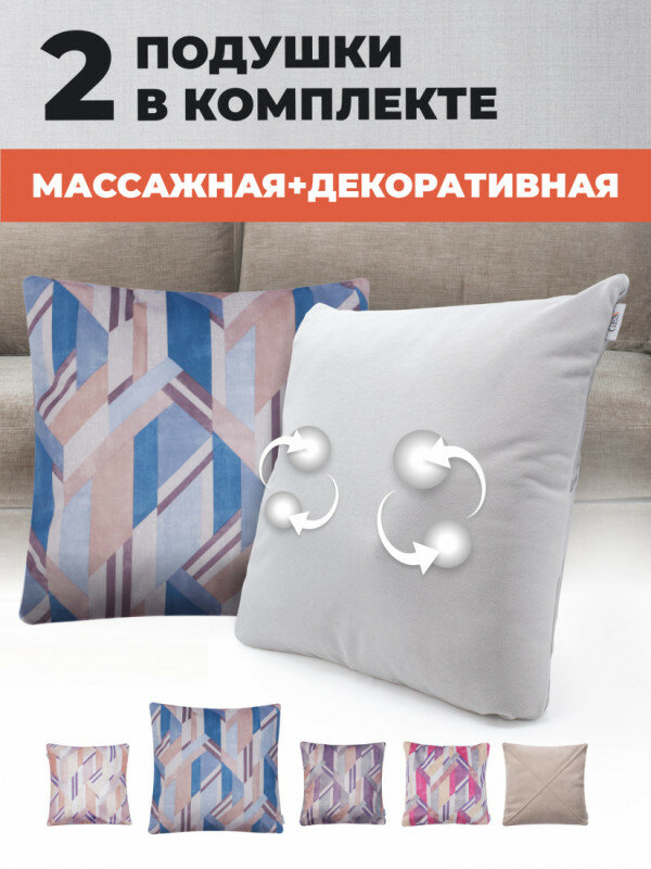 Беспроводная массажная интерьерная подушка GESS Decora (рубиновая) GESS-161 + дополнительная обычная декоративная подушка и 2 наволочки в одном цвете