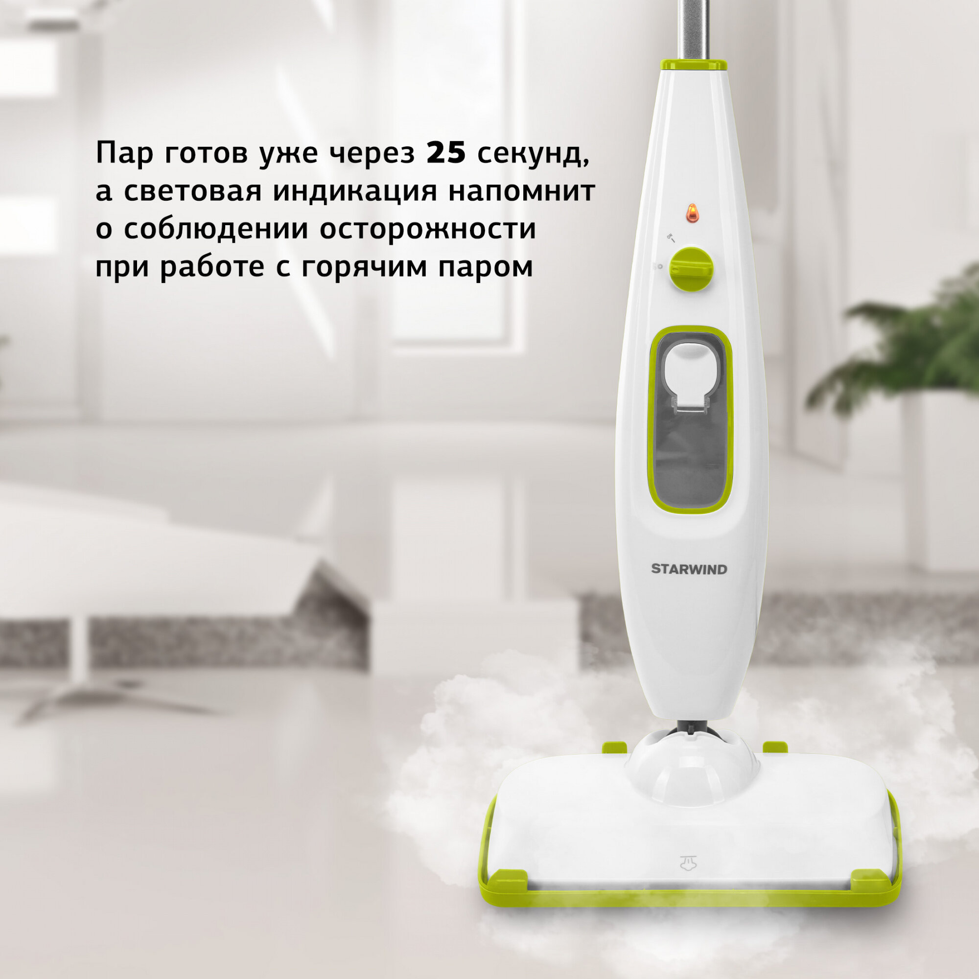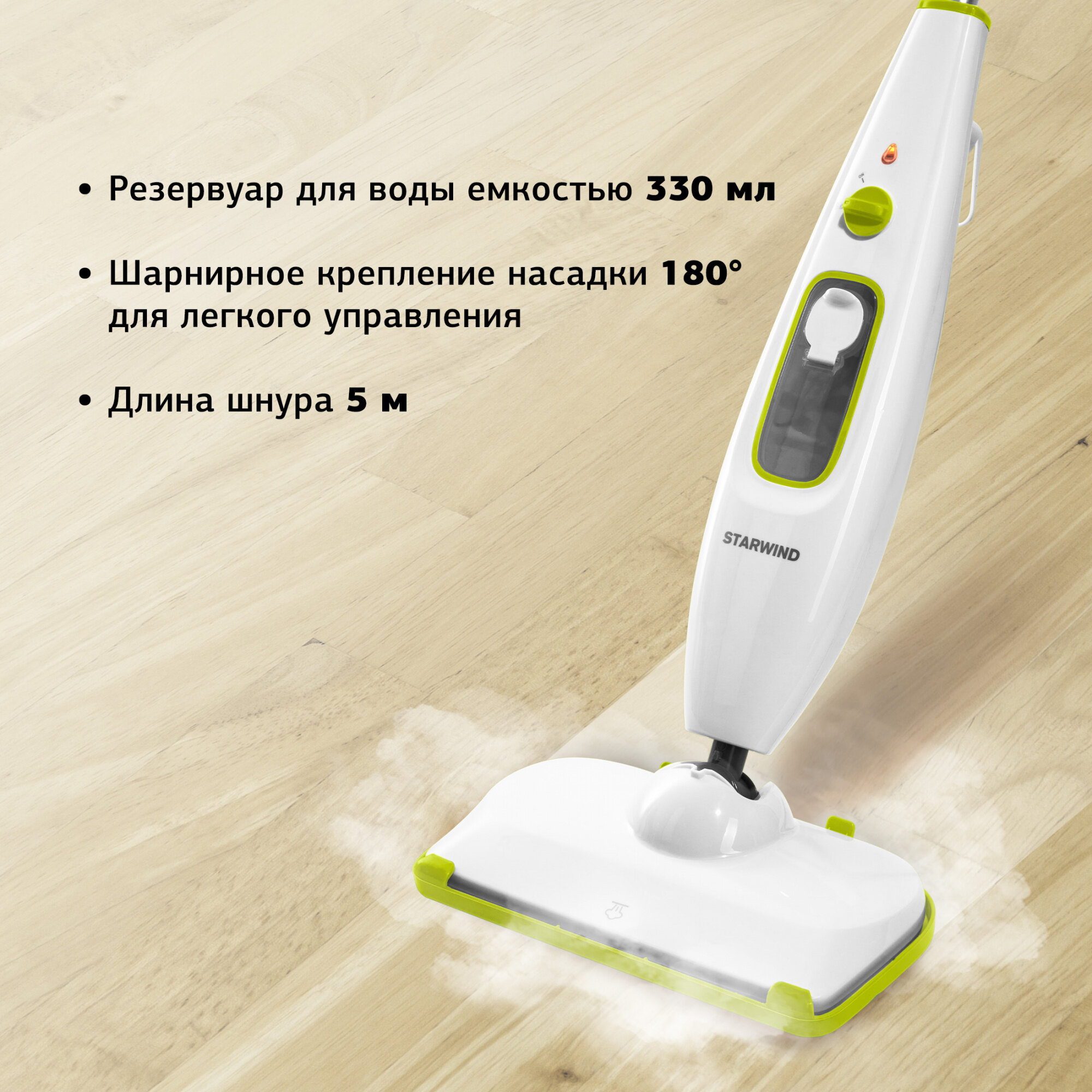 Швабра паровая Starwind SSM5330, белый/зеленый