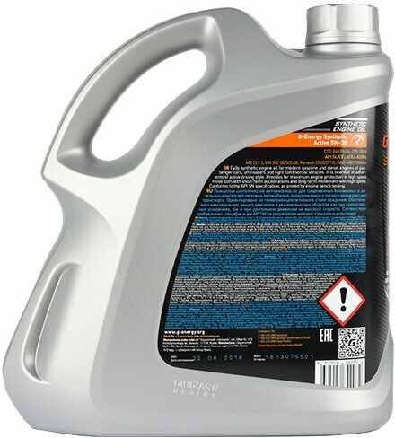 Синтетическое моторное масло G-Energy Synthetic Active 5W-30, 4 л, 3.4 кг