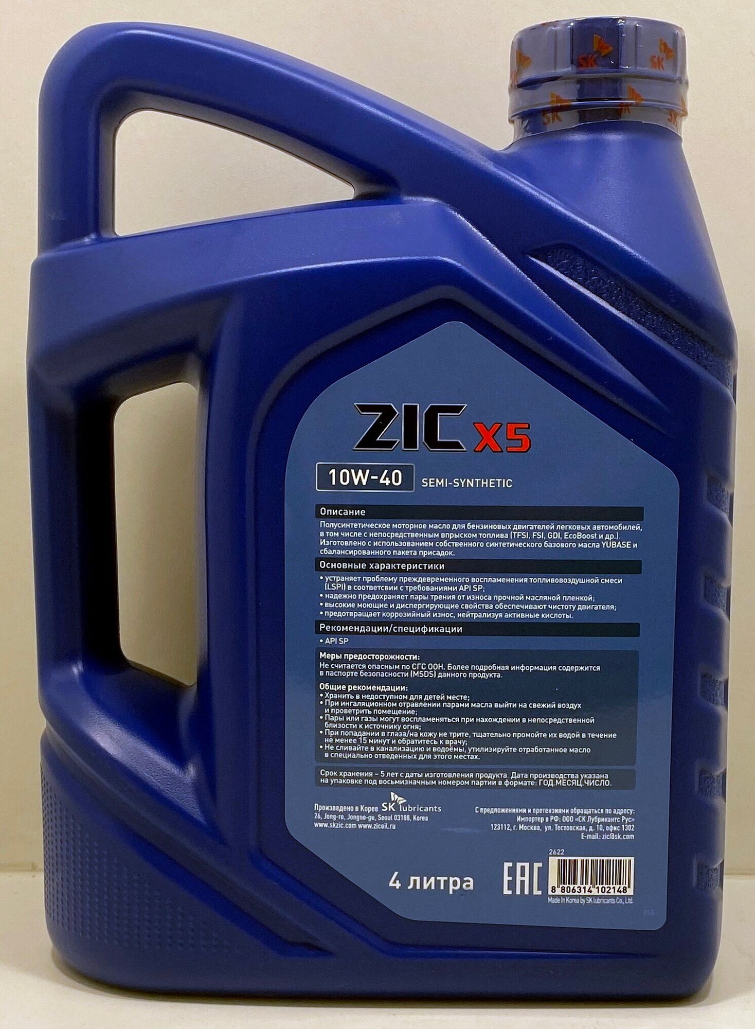 Моторное масло ZIC X5 10W-40, 4 л, 162622 полусинтетическое