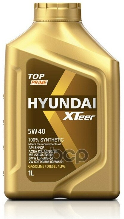 HYUNDAI-XTEER 1011116 Масо моторное синтетическое 1 - XTeer TOP Prime 5W40 API SN,CF, ACEA C3 A3,B3,B4 MB-Approval 229.31,229.51 BMW Longlife - 04, Poreche A40 VW 502 00,505 00,505 01