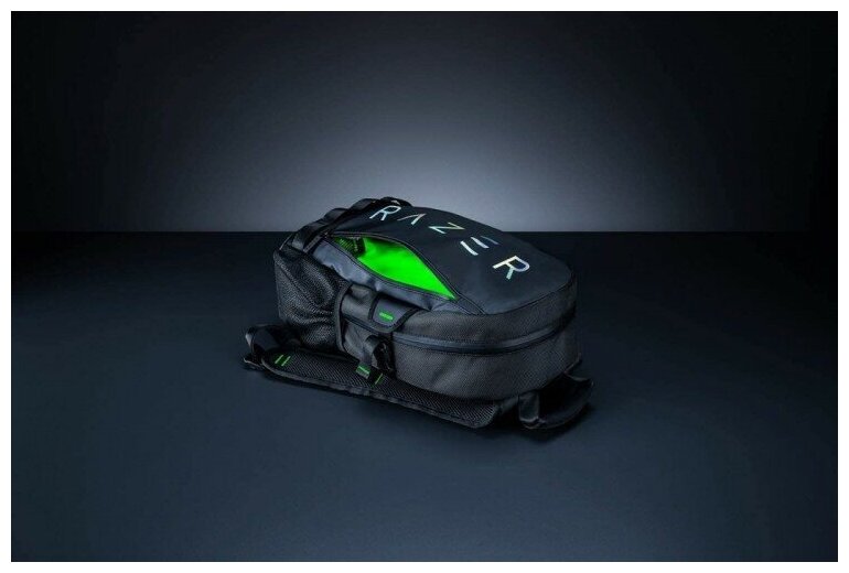 Первое впечатление оставляет очень хорошее. Цветовая гамма: классический Razer, черный снаружи и зеленый внутри. Хроматическая надпись выглядит круто, а главное, что она хорошо приклеена. От воды защищен сам рюкзак и все молнии. Лямки регулируются на ходу, не снимая рюкзак с плеч. Полик рюкзака сшит из кожзама. В целом, кажется, что рюкзак сшитдобротно но это на первый взгляд. |
