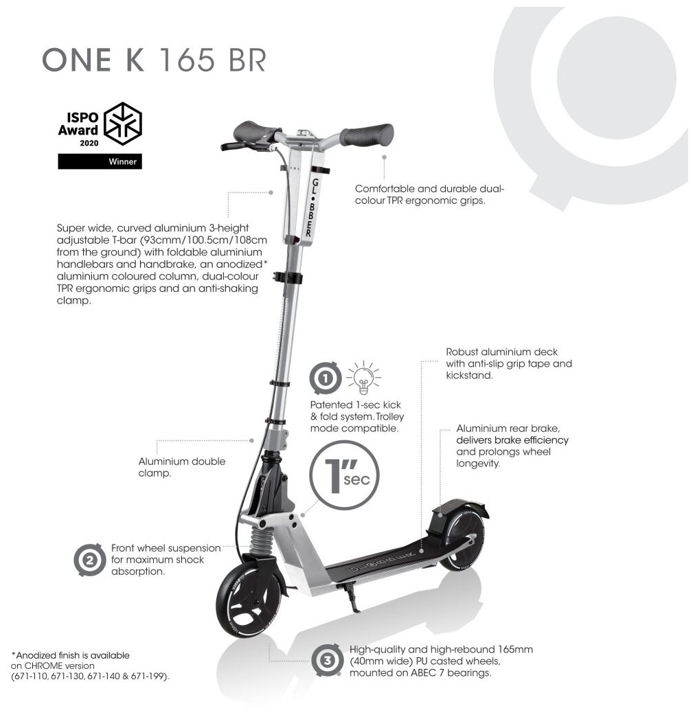 Самокат Globber ONE K 165 BR (серебро 672-130)