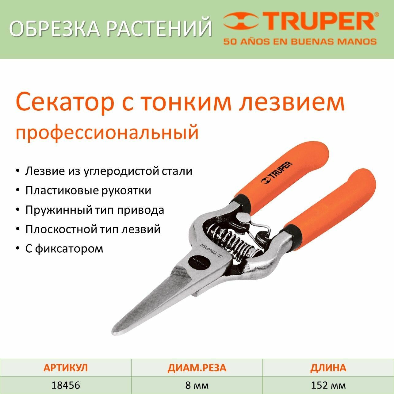 Секатор с тонким лезвием Truper 18456 .