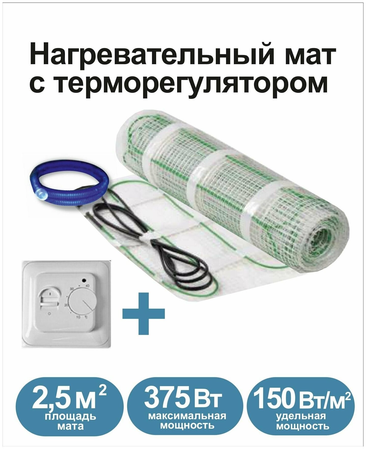 СохранитьНагревательный мат, Грейка, 375-2,5 150 Вт/м2 с механическим терморегулятором, 2,5 м2, 500х50 см интересное:
