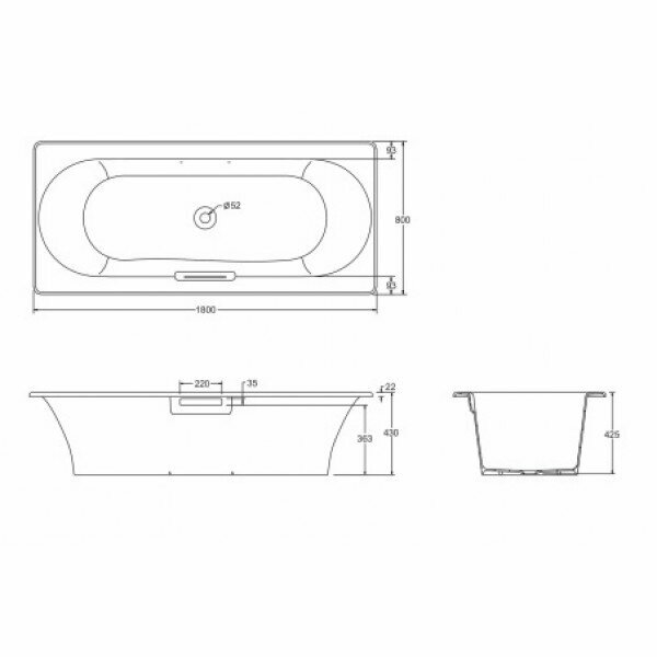 Чугунная ванна Jacob Delafon VOLUTE 1800x800 без отверстий для ручек E6D900-0