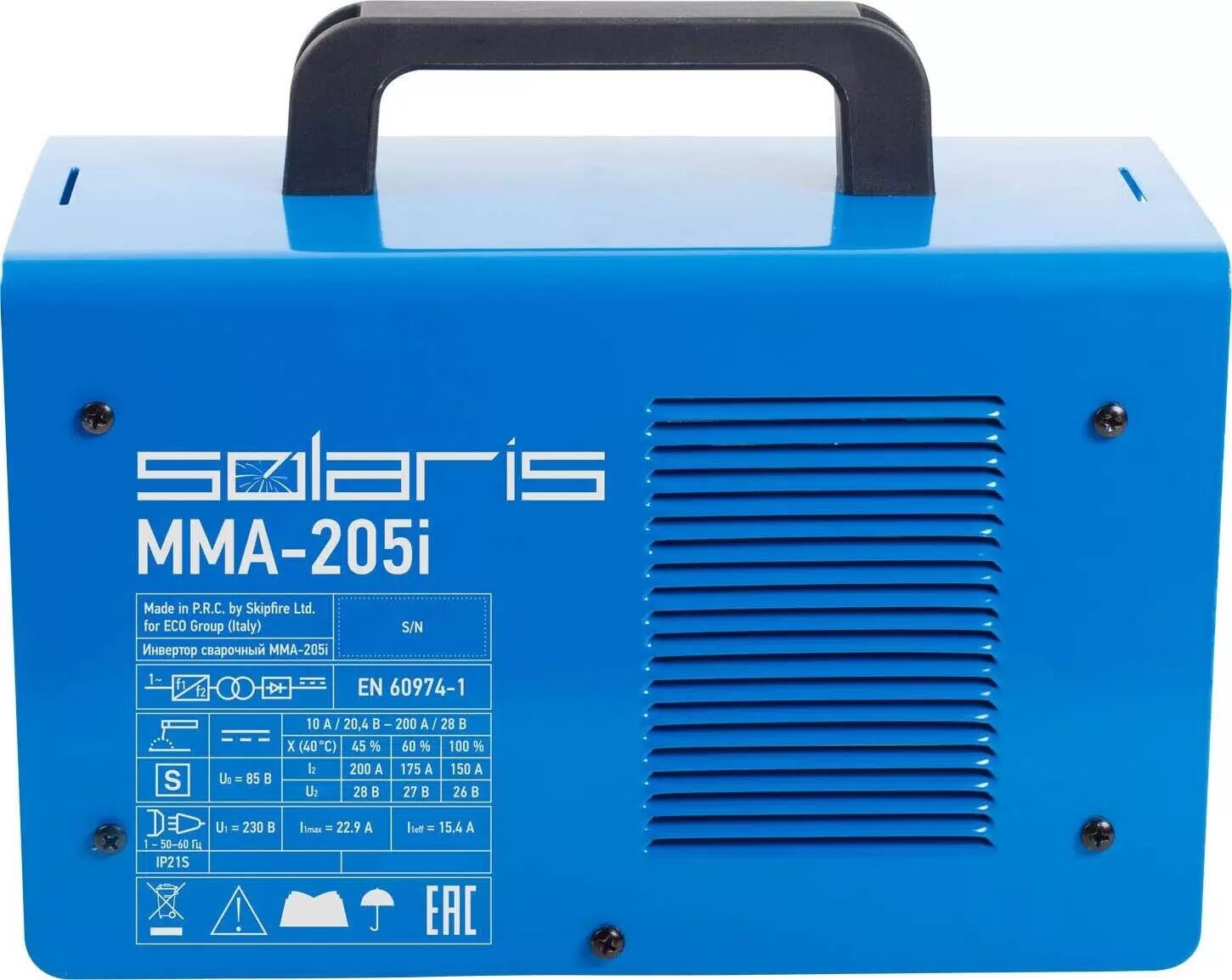 Solaris Инвертор сварочный MMA-205i (230В, 10-200 А, 85В, электроды диам. 1.6-4.0 мм, вес 5.1 кг)