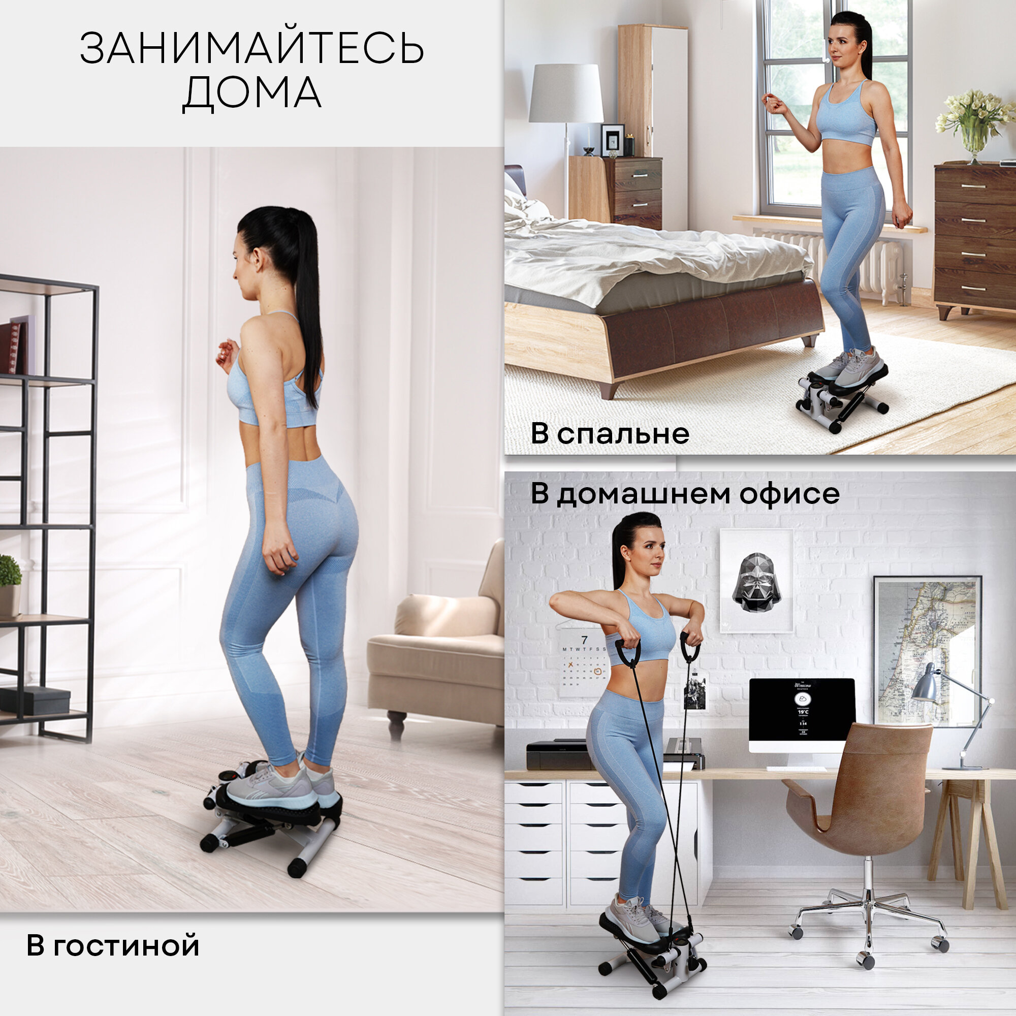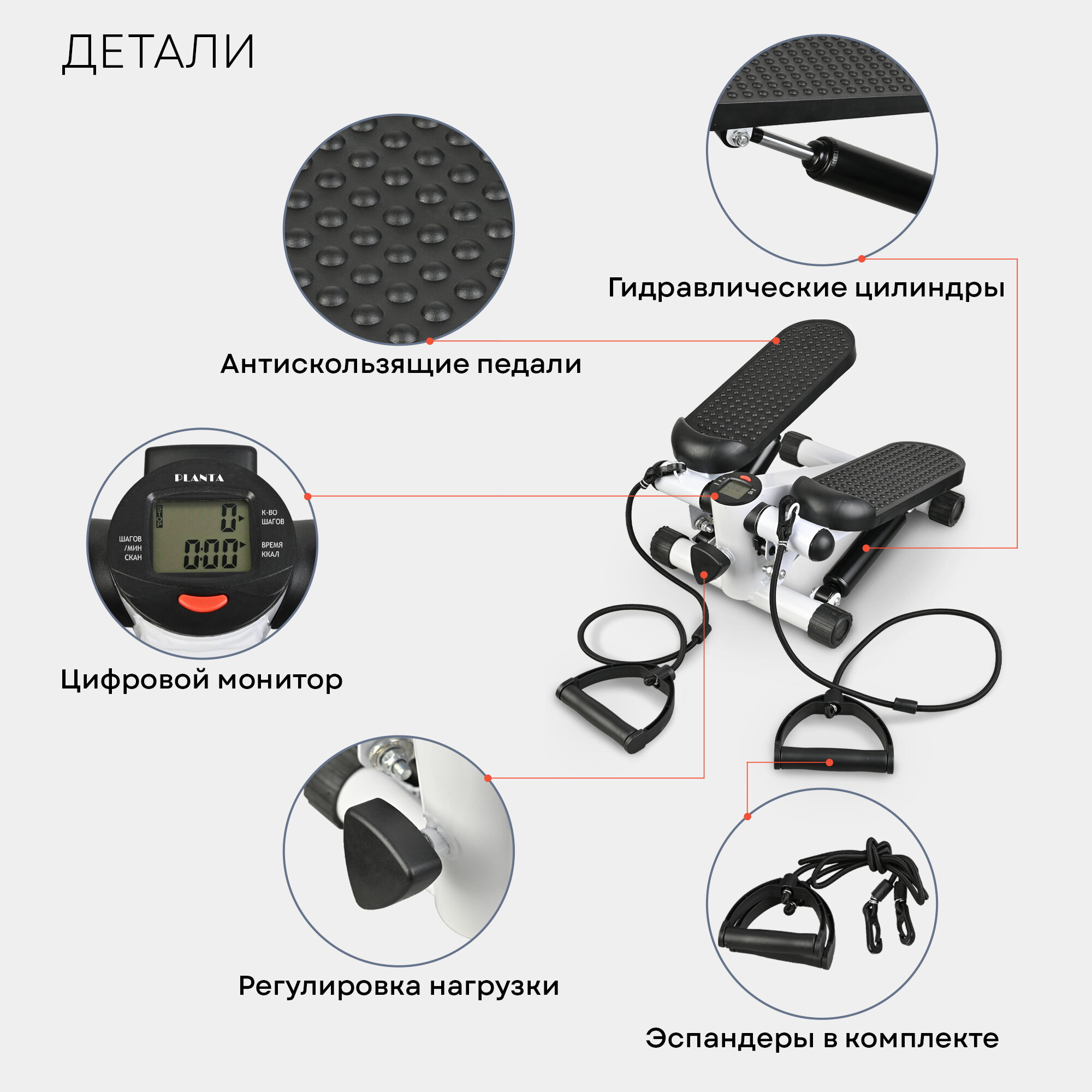 PLANTA Мини-степпер с эспандерами FD-STEP-001, ножной домашний кардиотренажёр для похудения, для ног, бедер, ягодиц интересное: