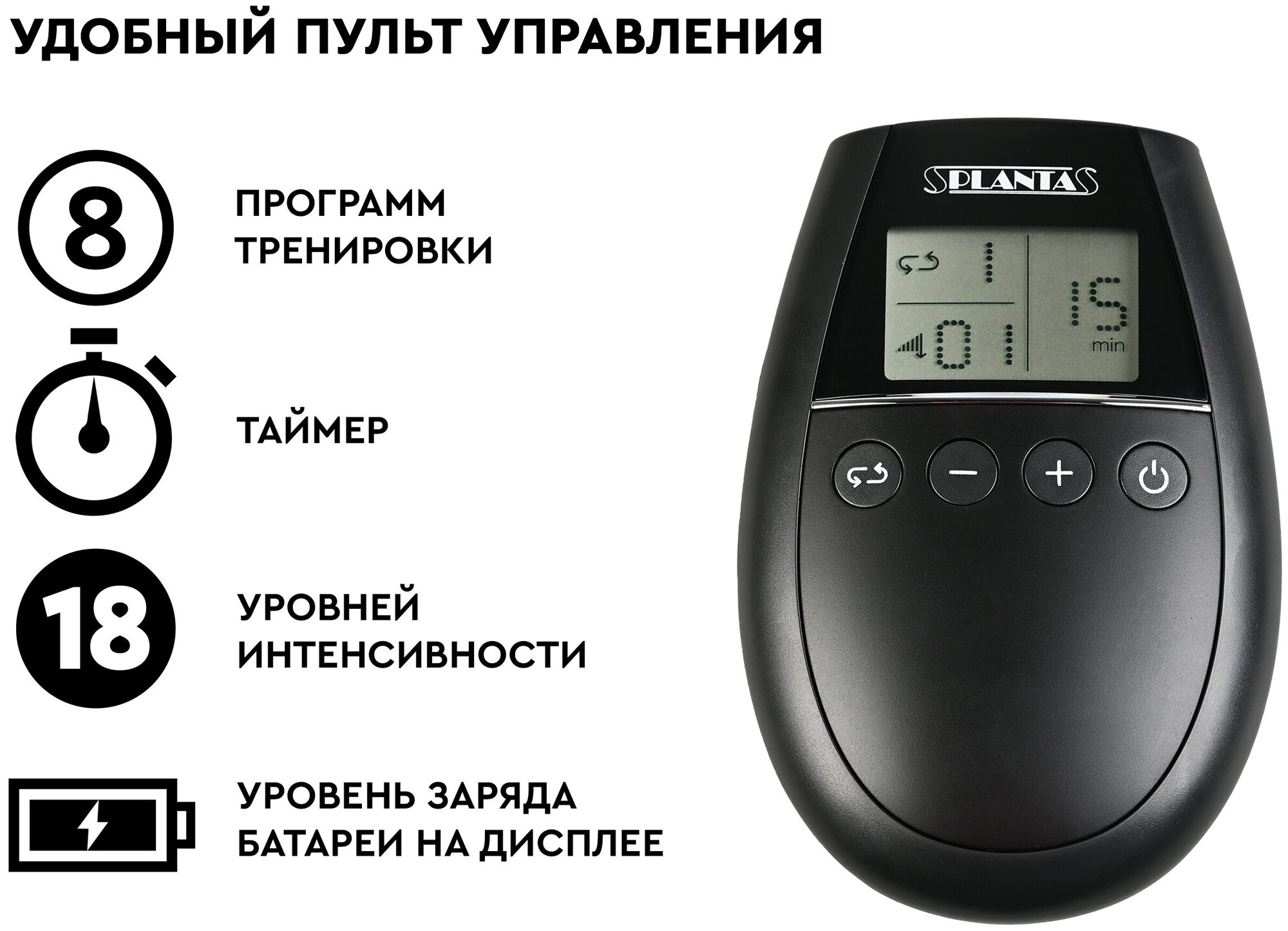 PLANTA Пояс - миостимулятор для пресса EMS-400, электрический массажер для мышц пресса, 8 программ, 18 уровней интенсивности, таймер, пульт управления