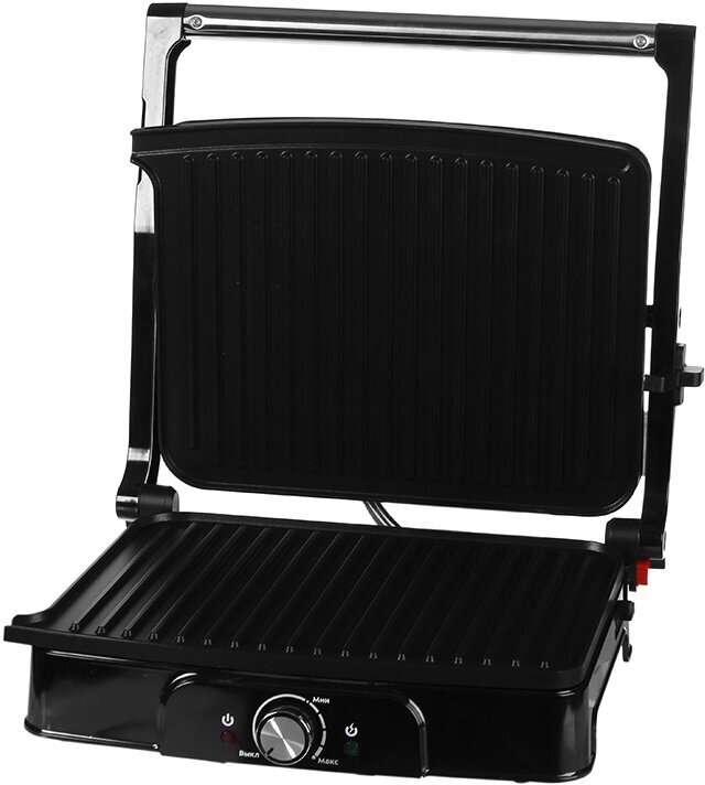| Плюсы: | Быстрый нагрев, оптимальный размер панелей, простое управление, прекрасная прожарка мяса и овощей, раскладывающиеся на 180 градусов панели |