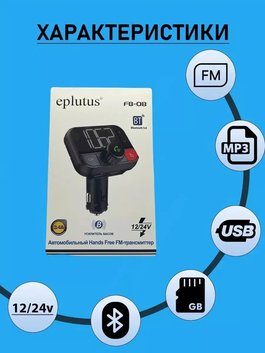 Купить Автомобильный FM-модулятор с Bluethooth/ FM-трансмиттер Eplutus FB-08/ громкая связь