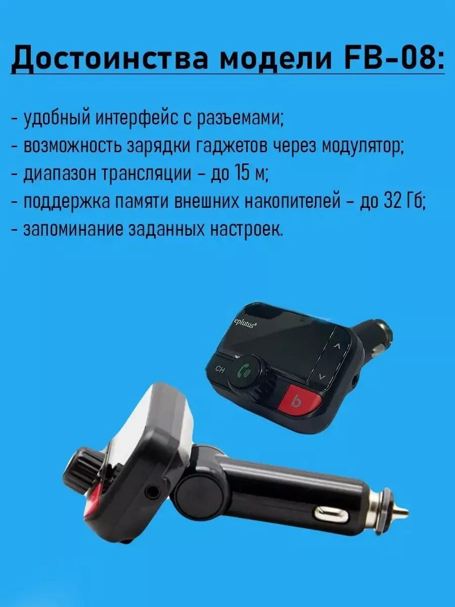 Автомобильный FM-модулятор с Bluethooth/ FM-трансмиттер Eplutus FB-08/ громкая связь интересное: