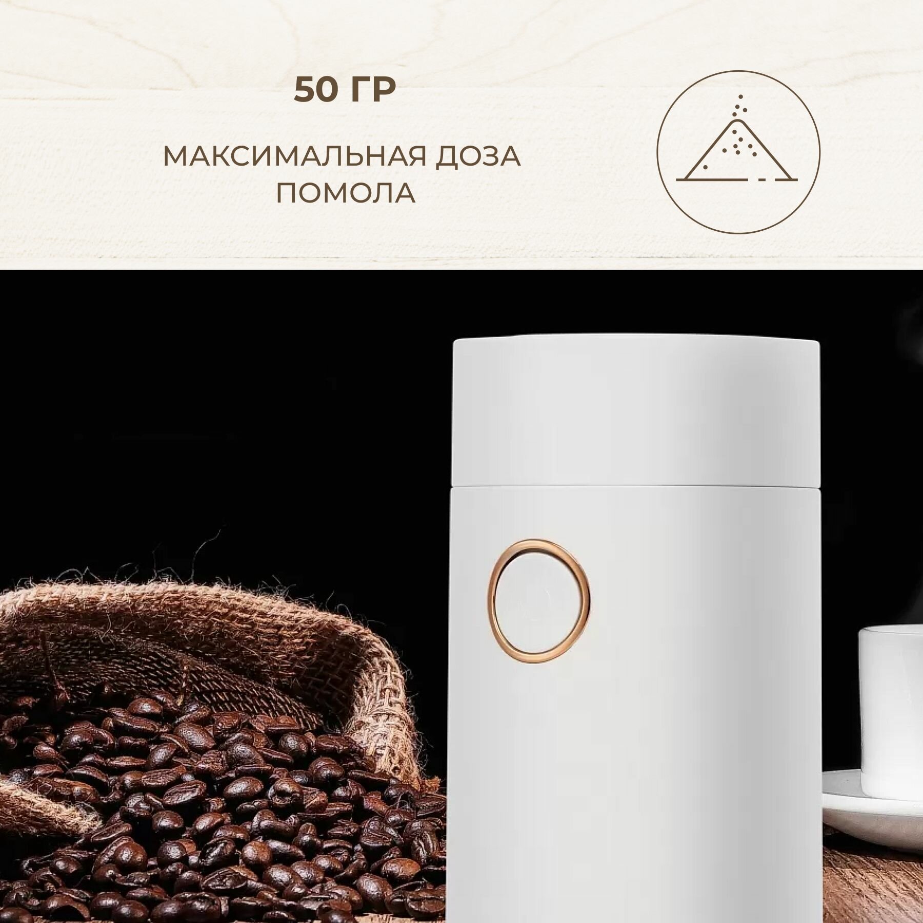 Кофемолка Polaris PCG 2014, электрическая, ножевая, 200 Вт, 50 г, белая