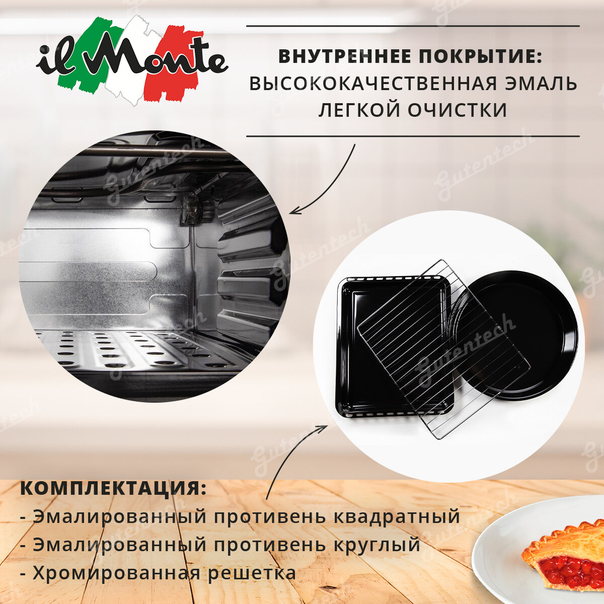 Мини-печь il Monte Электрическая духовка мини печь, 40л., 1400Вт, Два ТЭНа класса Люкс, Нижний ТЭН закрыт, 3 режима, 50-300С, Таймер с автоотключением, Подсветка, Эмаль легкой очистки, EO-4003 inox