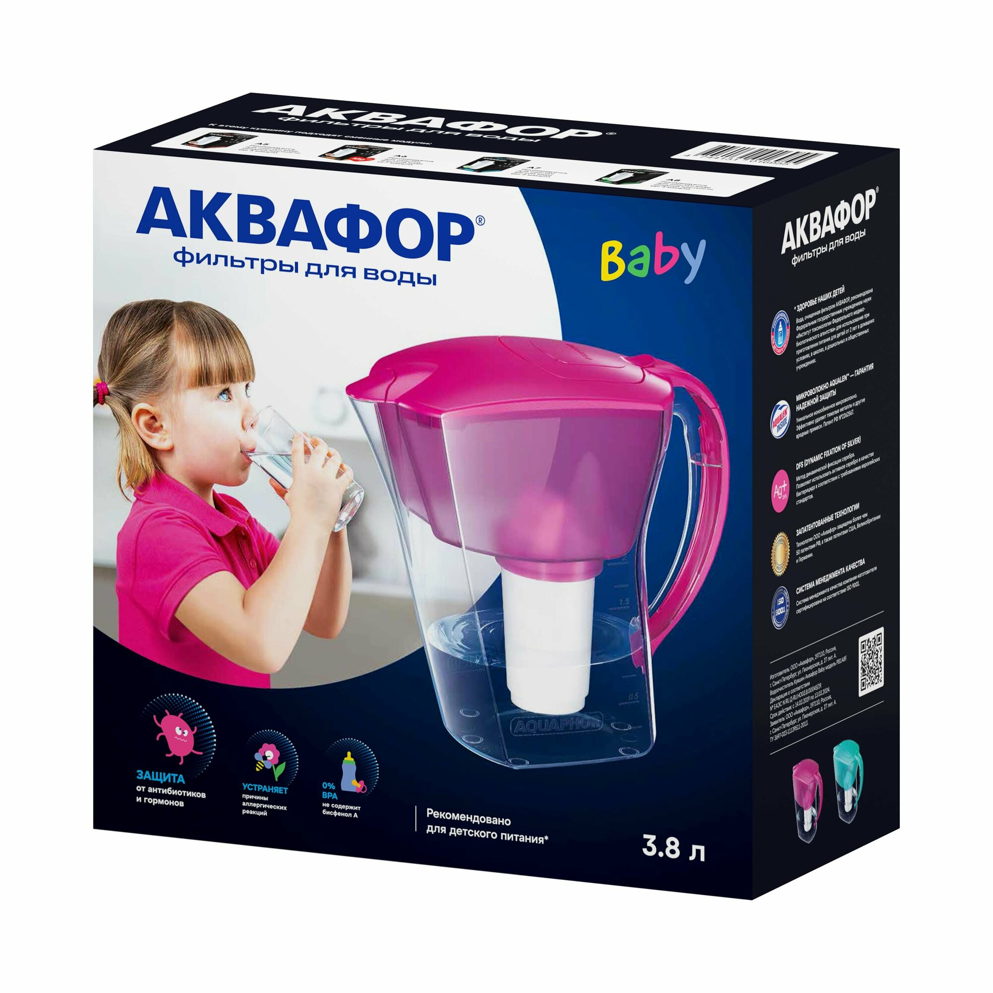 Фильтр-Кувшин Аквафор Baby А8 (цикламен) кувшин 3,8л Р81А8F, арт.516038 (арт. 817618)