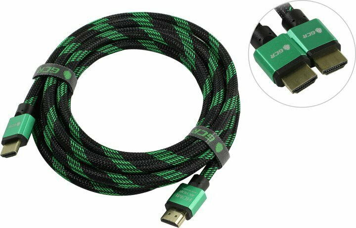 HDMI кабель 1.5м GCR Ultra HD 4K 3D 18 Гбит/с частично нейлон 24K GOLD черно-зеленый для компьютера