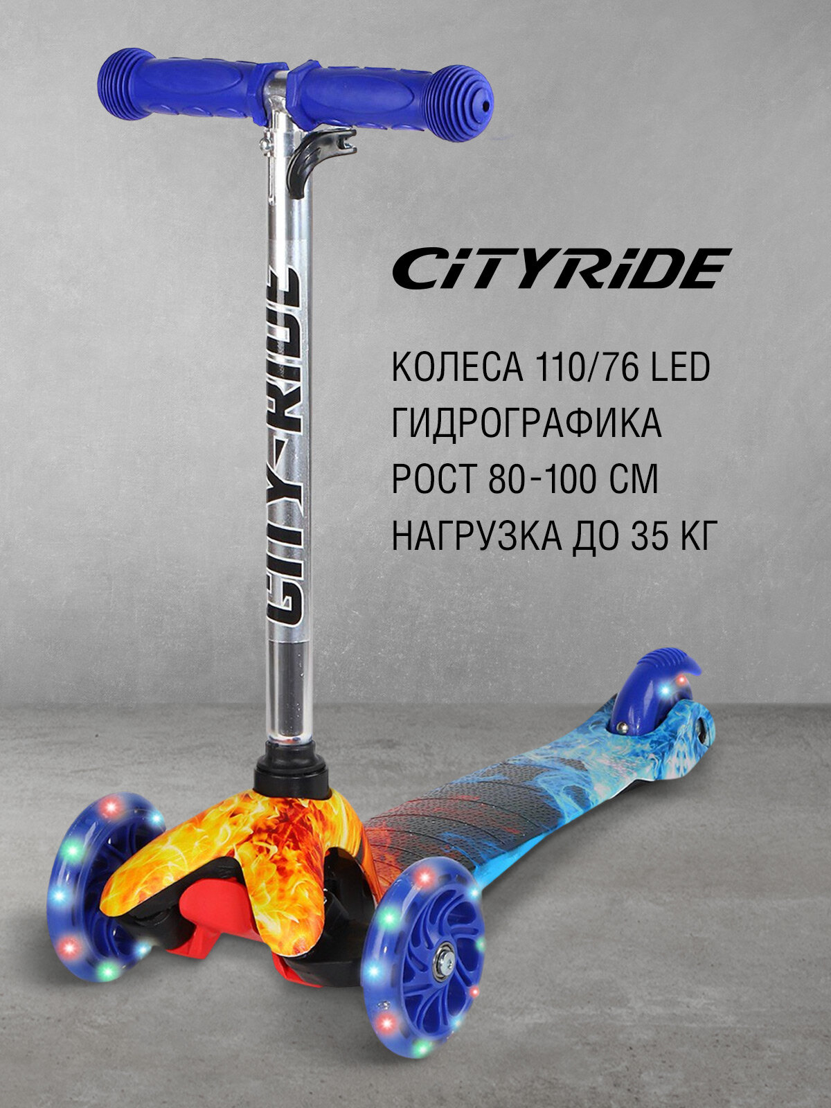 Самокат детский трехколесный ТМ CITYRIDE, колеса со светодиодами PU120/76, руль телескопический, CR-S4-05BLR