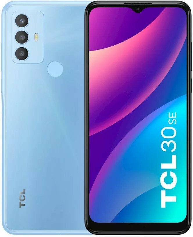 TCL TCL 30SE Glacial Blue, 16,56 см (6.52") 20:9 720x1600, 4x2,0 ГГц+4x1,5 ГГц, 8 Core, 4GB RAM, 128GB, up to 512GB flash, 50 МП + 2 МП + 2 МП/8Mpix, 2 Sim, 2G, 3G, LTE, BT v5.0, Wi-Fi, NFC, GPS, Type-C, 5000mAh, Android 12, 190g, 165,2 ммx75,5 ммx8,9 мм