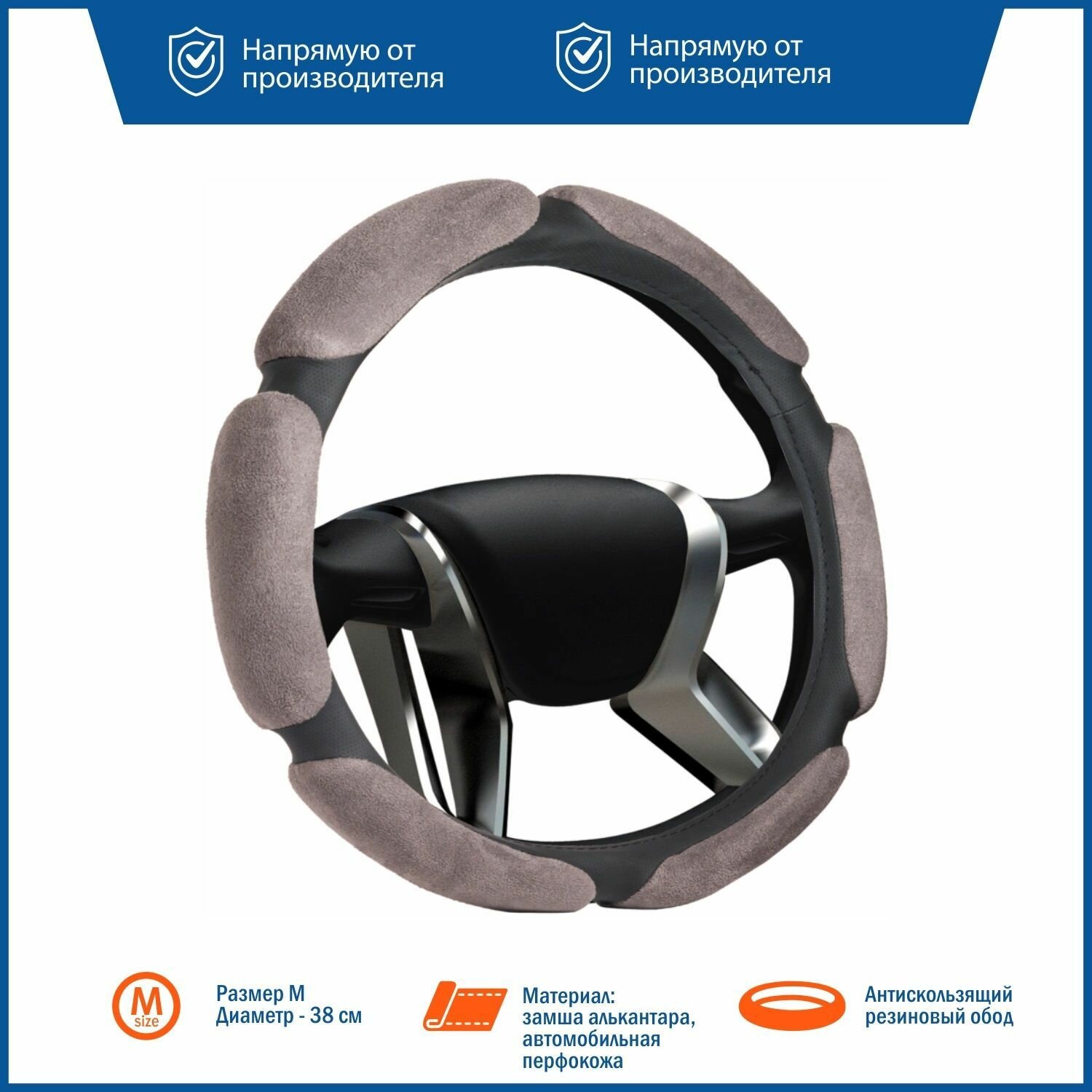 Оплетка на руль "M" (d=38см) спонж 6 лепестков /серый/