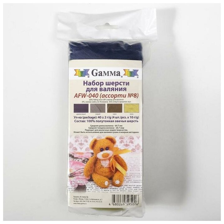 Gamma' AFW-040 набор шерсти для валяния 100% мериносовая шерсть 4 х 10 г цвет ассорти № 8