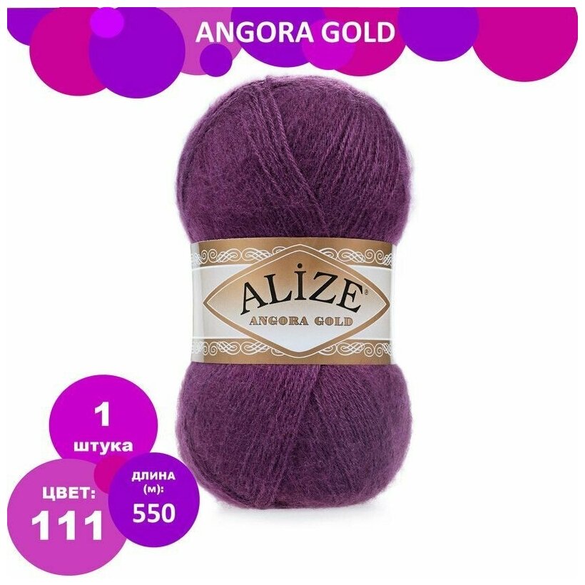 Пряжа Alize Angora Gold (Ангора Голд) 111 сливовый 20% шерсть, 80% акрил 100г 550м 5шт