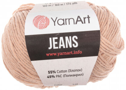 СохранитьПряжа YarnArt Jeans (ЯрнАрт Джинс) - 1 моток Цвет: 87 светло-бежевый 55% хлопок, 45% полиакрил 160м/50г интересное:
