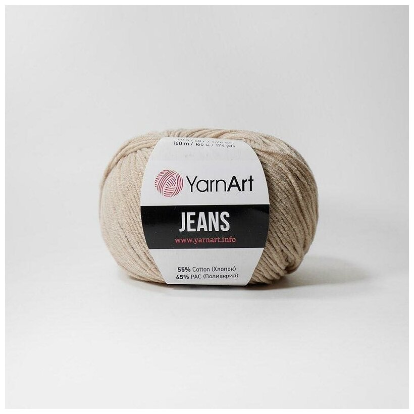Купить Пряжа YarnArt Jeans (ЯрнАрт Джинс) - 1 моток Цвет: 87 светло-бежевый 55% хлопок, 45% полиакрил 160м/50г